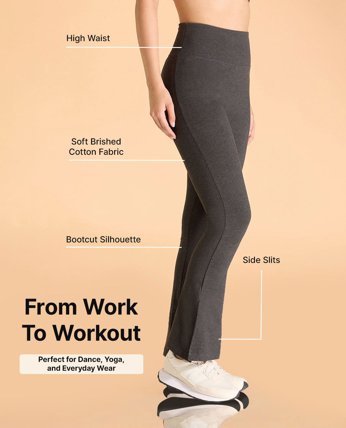 Designed in our Ease-In Cotton blend, the Bistro Flare Pants have an easy-breezy-free feel that pushes you to get energised for the day. A soft, comfortable brushed fabric, it's soft on the skin and perfect for yoga, dance, and even your coffee runs.