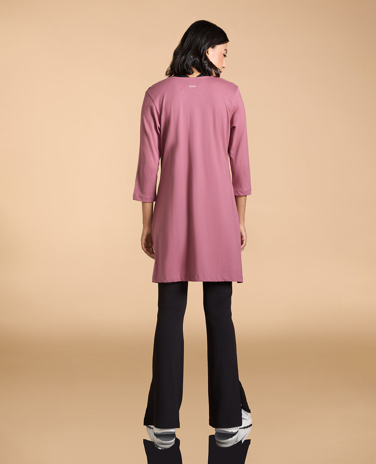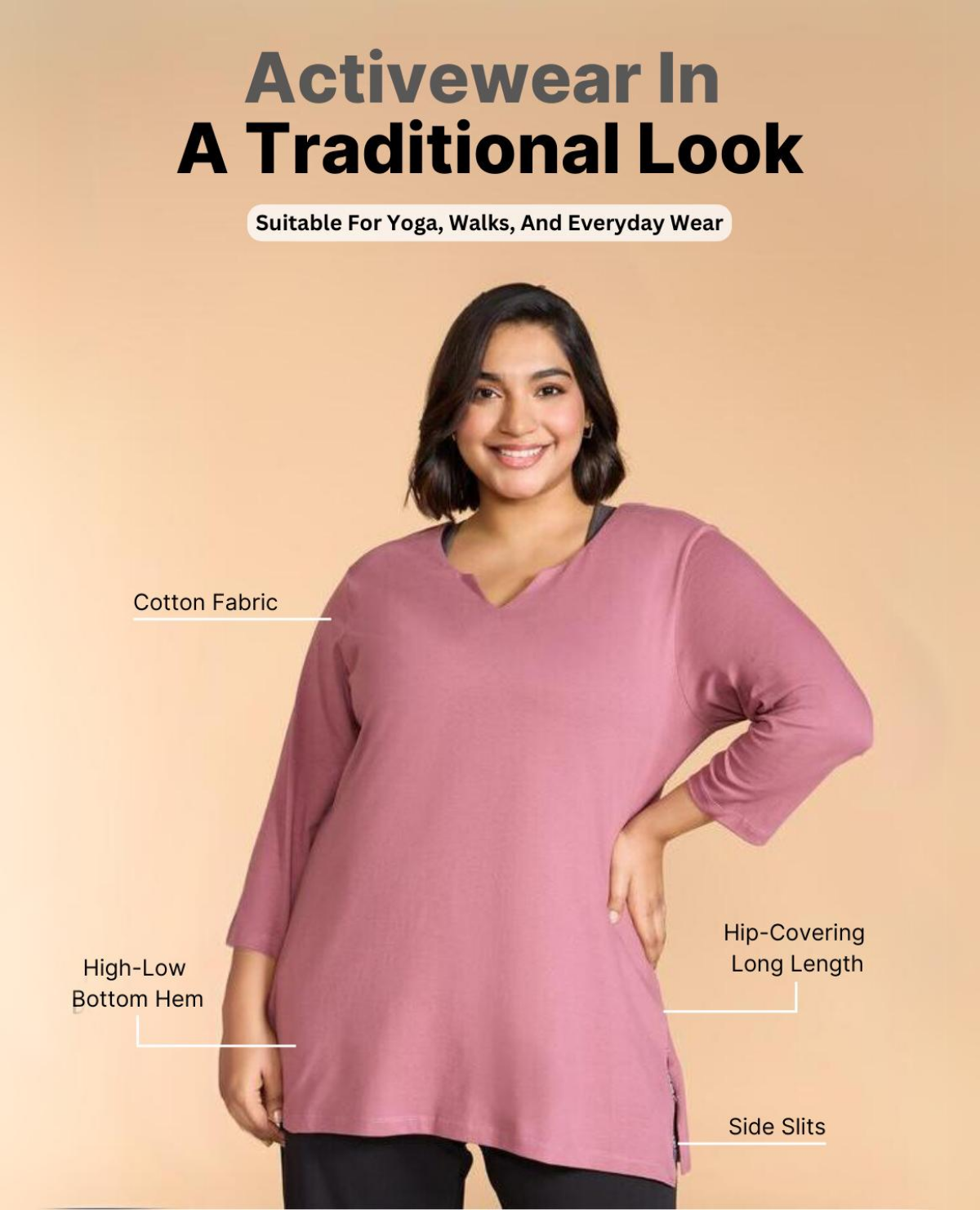 Activewear with a traditional and modest look! This kurti is suitable for all those women looking to get moving in the comfort of their Indian wear. Designed in a soft cotton blend, it is comfortable, breathable, and performance-friendly. Its modest length also covers your hip area. Side slits and a high-low hem add to the flattering fit.