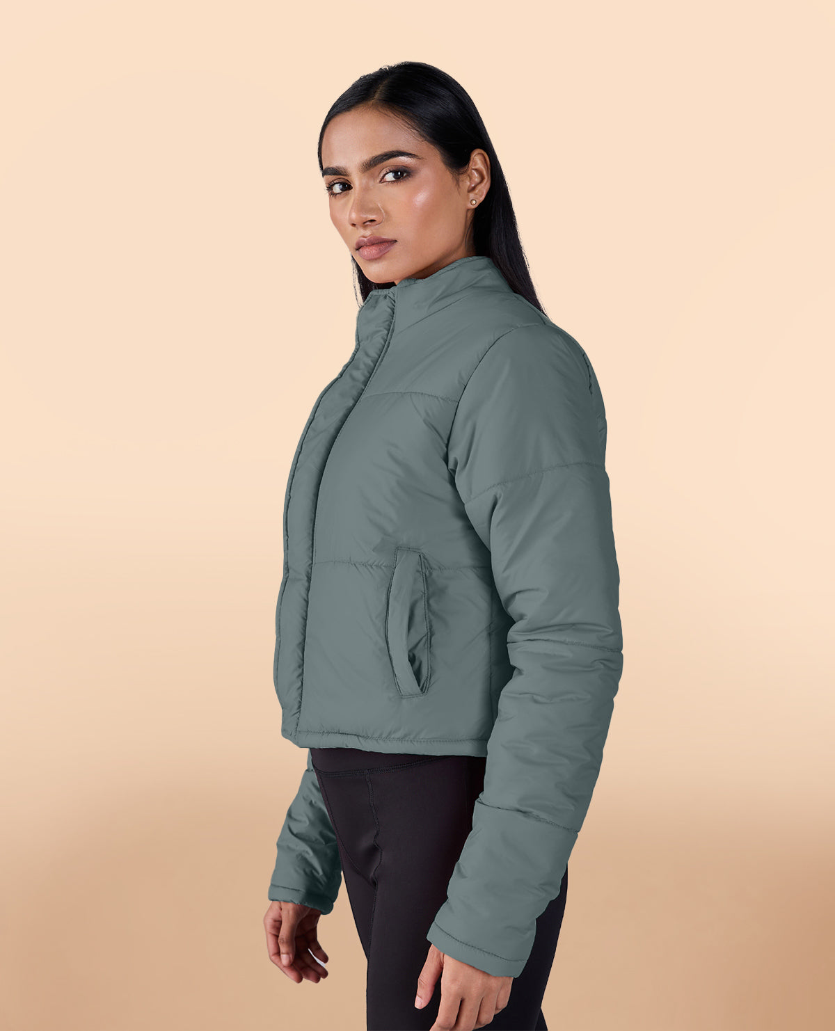 Cropped Puffer Jacket Olive