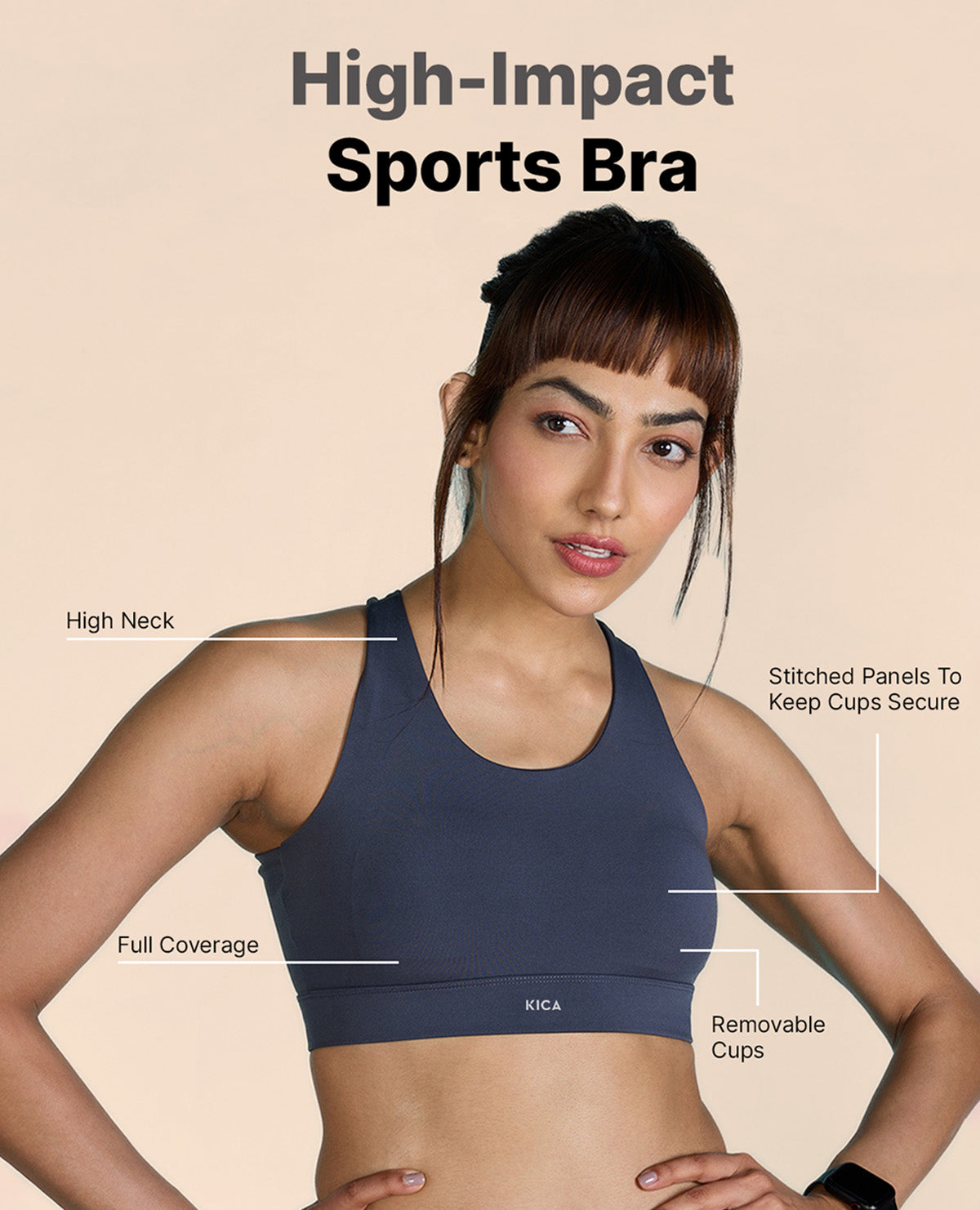 A: Kica offers sports bras in different impact levels to meet your specific activity needs. Our low-impact sports bras are suitable for activities like yoga or walking. For medium-impact activities such as cycling or hiking, we have sports bras that provide balanced support. And for high-impact activities like running or intense workouts, our high-impact sports bras offer maximum support and minimize bounce.