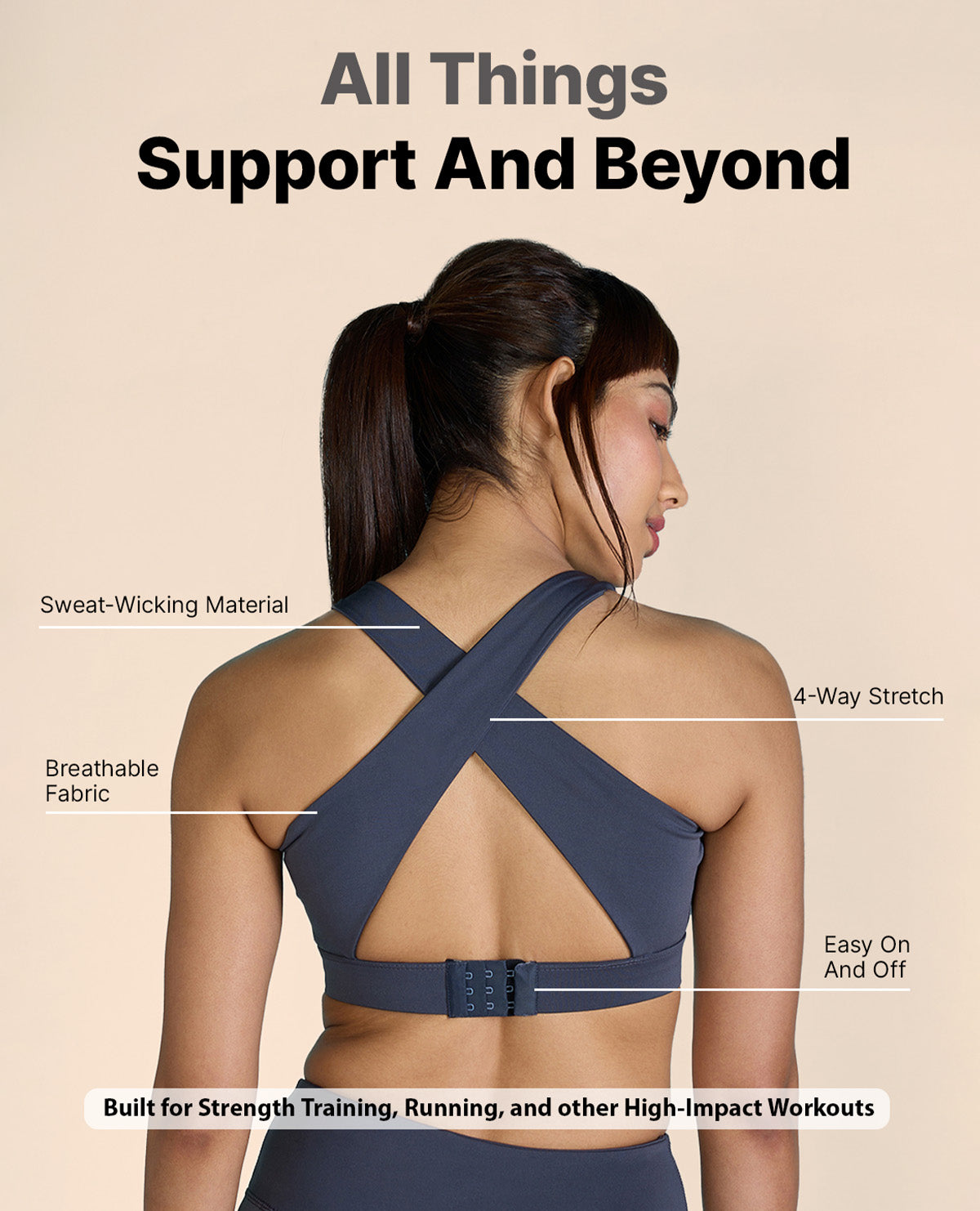 - The sexy cross-design back eases pressure off your shoulders while offering maximum support.