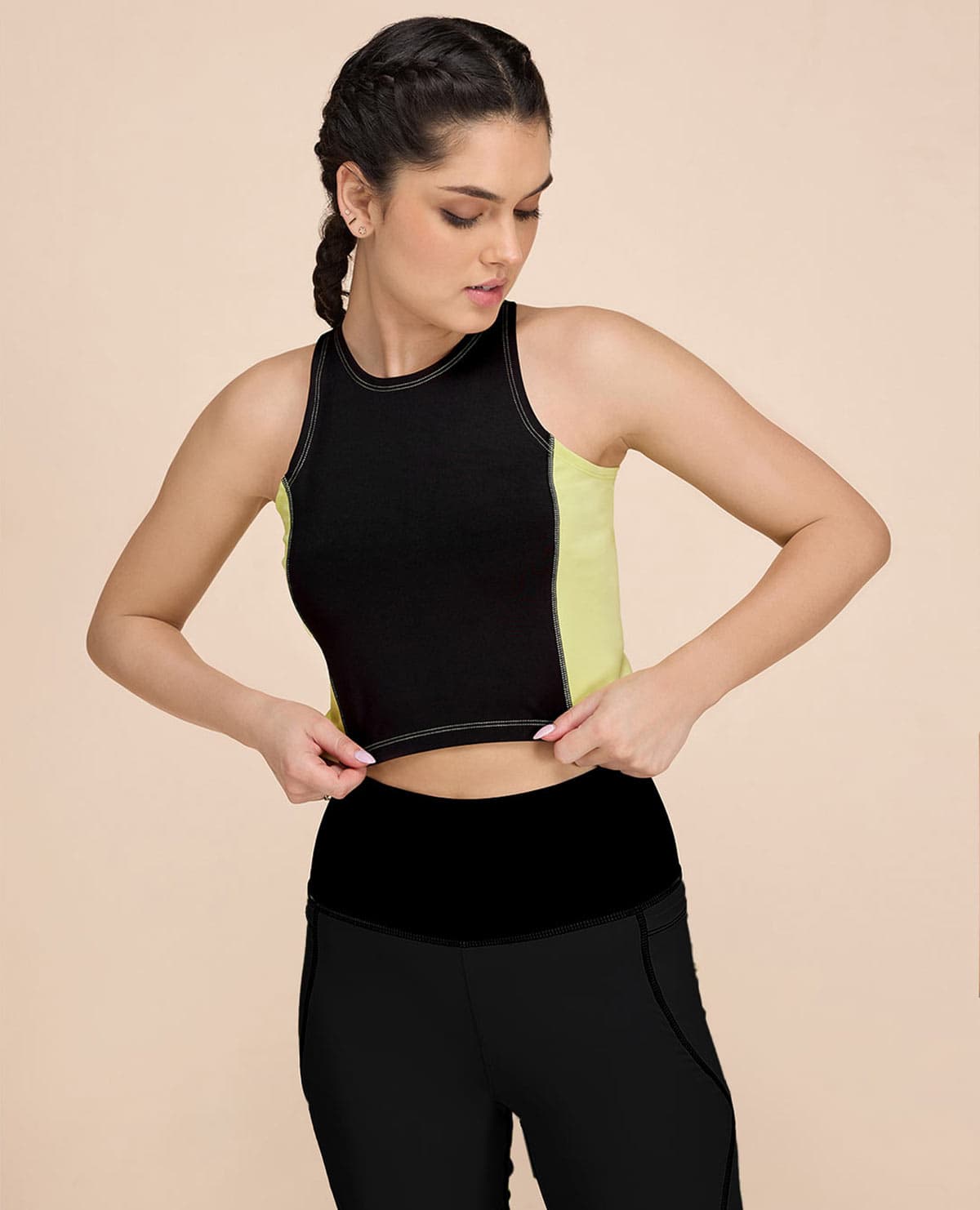 Constructed and contrasted to fit like a glove, our dual coloured Plum top is perfect for the transition from sweat to street. Perfect for a relaxed and laid back time or later when you crave a high intensity workout, pair it effortlessly with our high waisted leggings and high impact sports bra.