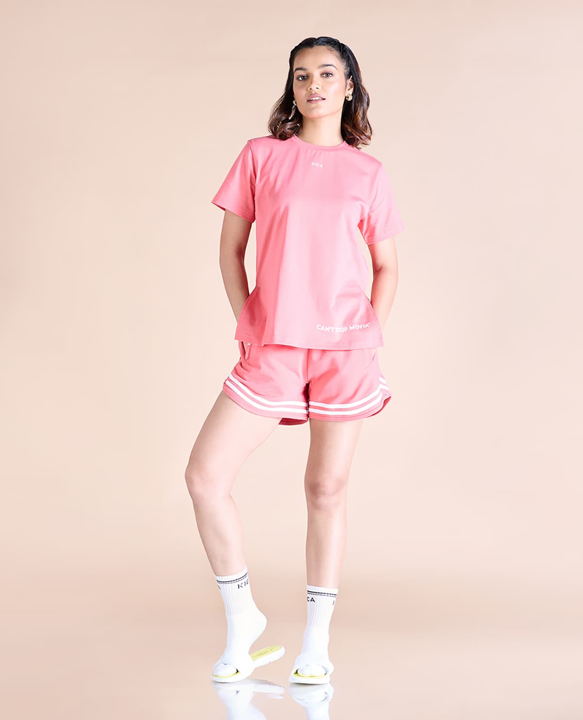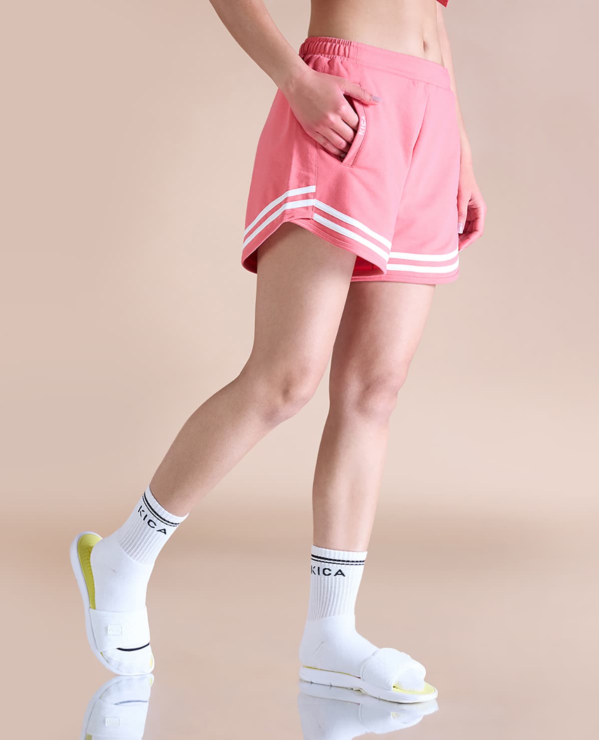 Our pair of cotton terry shorts can be used to work and twerk in. It is an easy relaxed fit and sits mid on the waist. Keep things comfy through your workout. Lightweight terry with a drawstring for adjustability at the waist and two pockets to keep your belongings safe. This mid-waist short means business, especially if paired with our Everyday Cropped Top.