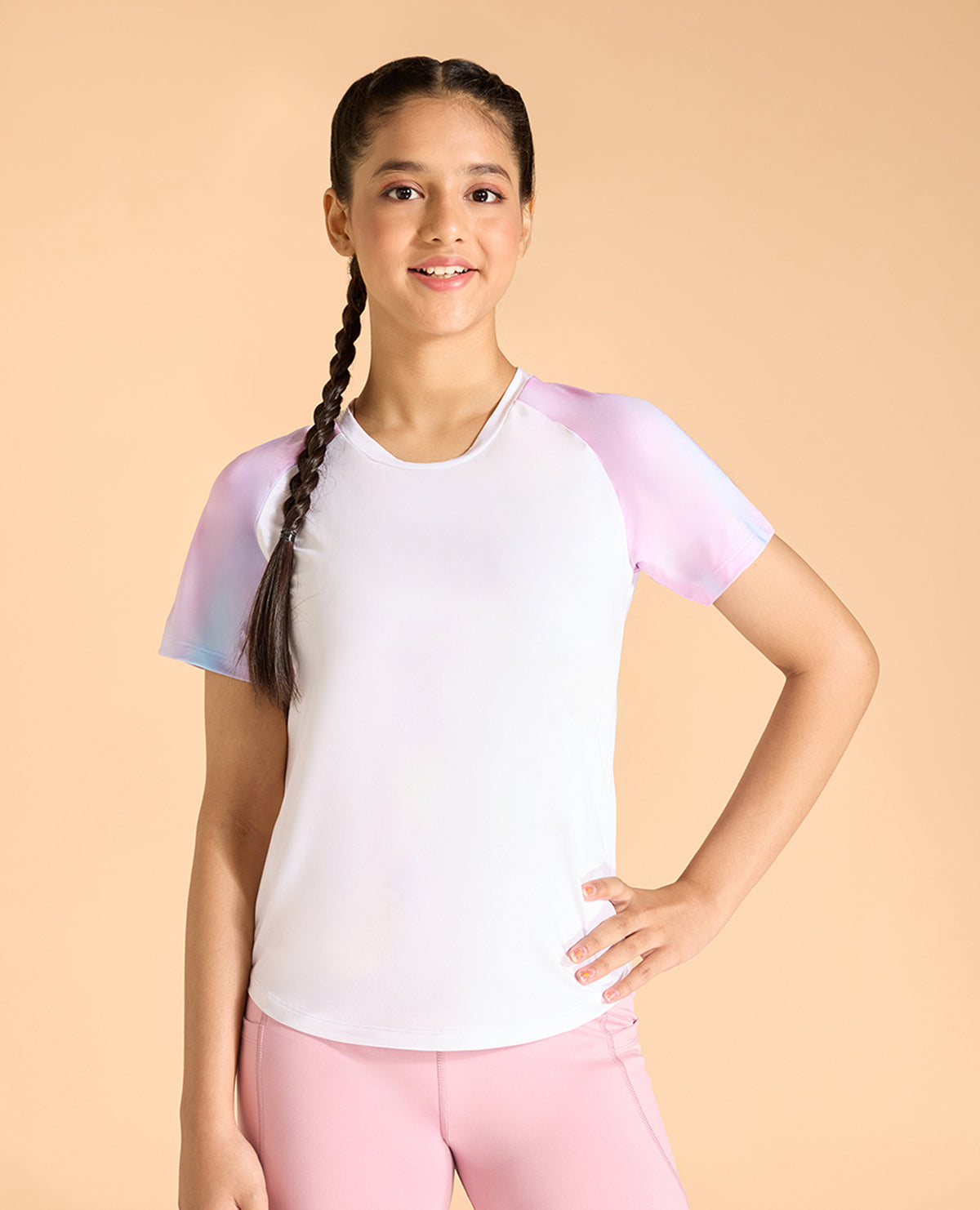 This regular fit top brings out your bubbly personality with some fun colour play and fit that is perfect to adapt to a teenage girl's changing body.
