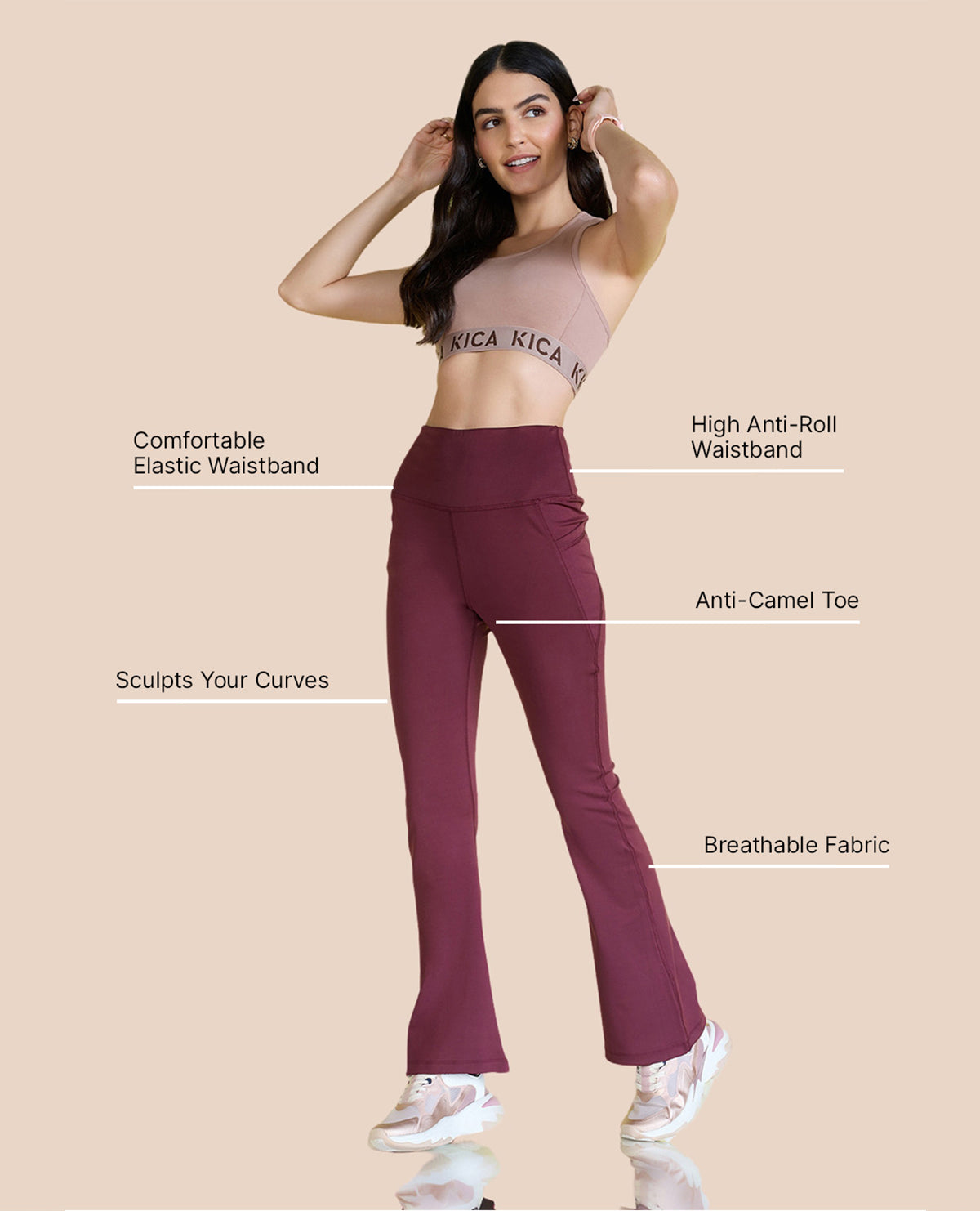 A: Kica Active's Flare Pants stand out with their perfect fit, bum sculpting support, squat-proof design, and versatility. These pants are carefully crafted to provide a flattering silhouette, enhanced support for your bum, confidence during workouts, and the ability to transition seamlessly from studio sessions to various occasions.
