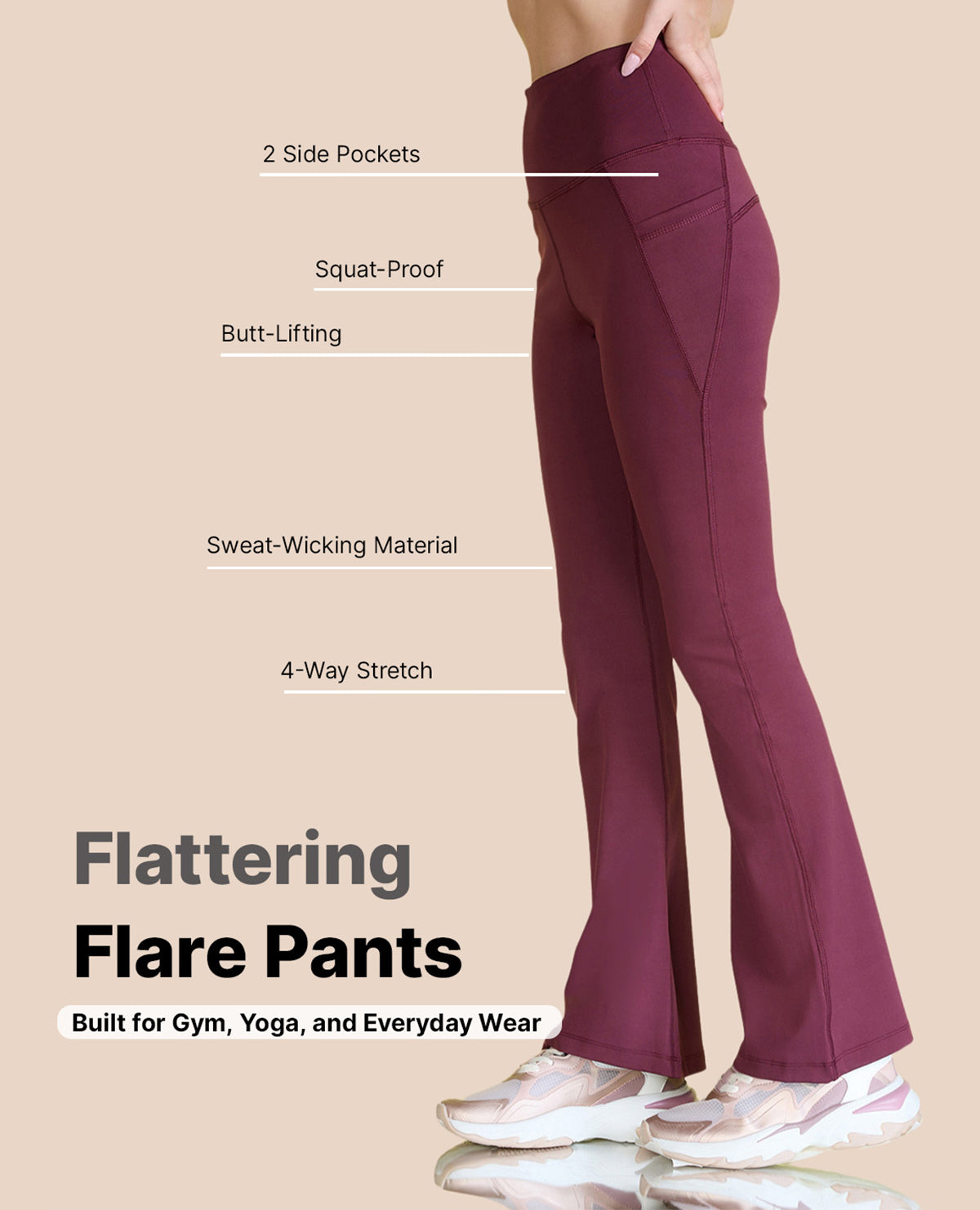A: We prioritize the perfect fit in our Flare Pants. Crafted with a combination of stretch and shape retention, these pants offer a flattering silhouette and flexibility to move with ease during your activities.