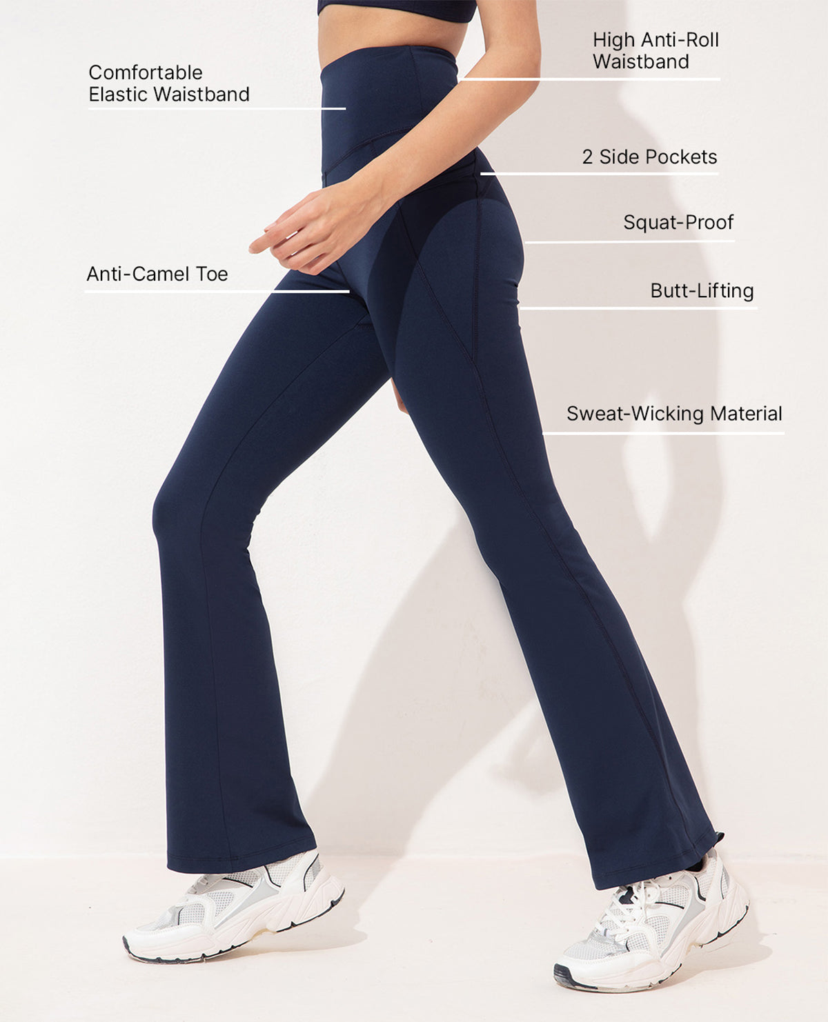 A: We prioritize the perfect fit in our Flare Pants. Crafted with a combination of stretch and shape retention, these pants offer a flattering silhouette and flexibility to move with ease during your activities.