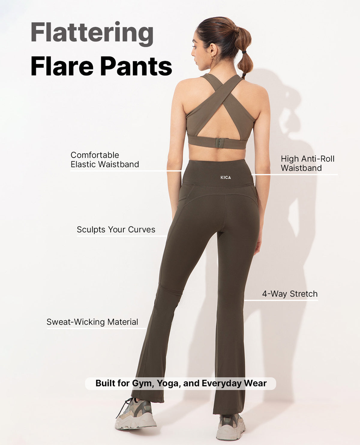 Q: How do Kica Active's Flare Pants achieve the perfect fit?