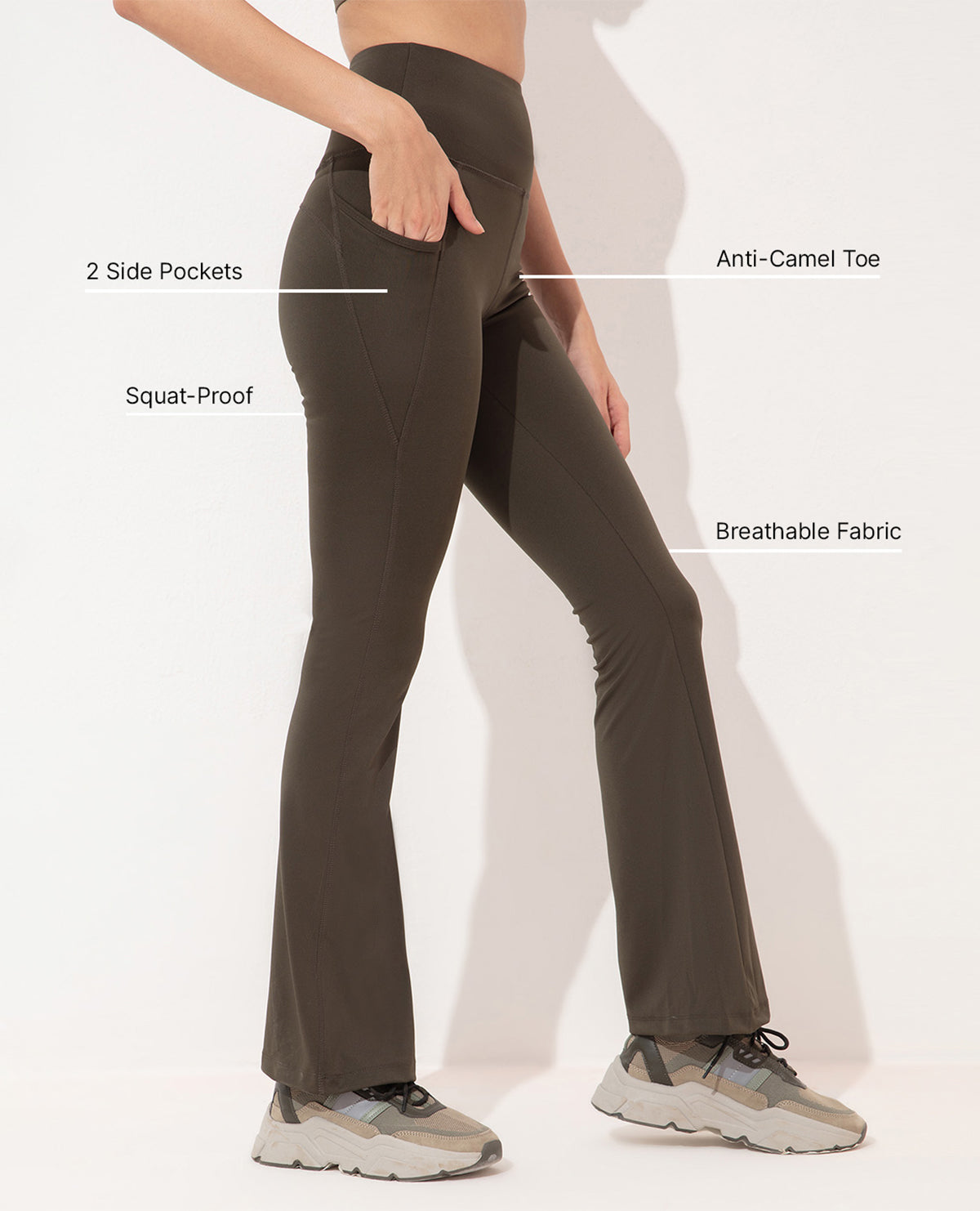 A: We prioritize the perfect fit in our Flare Pants. Crafted with a combination of stretch and shape retention, these pants offer a flattering silhouette and flexibility to move with ease during your activities.