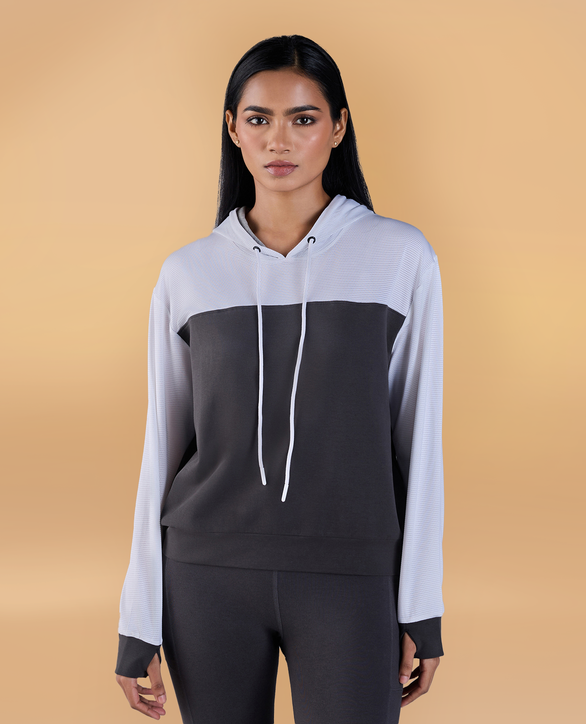 Step into the future of cozy chic with our softest Cotton Hoodie. Featuring a round neck and a vibrant color block mesh insert, it's your only ticket to trendsetting comfort. Elevate your look with this jaw-dropping hoodie that is not just a style, but also a vibe!