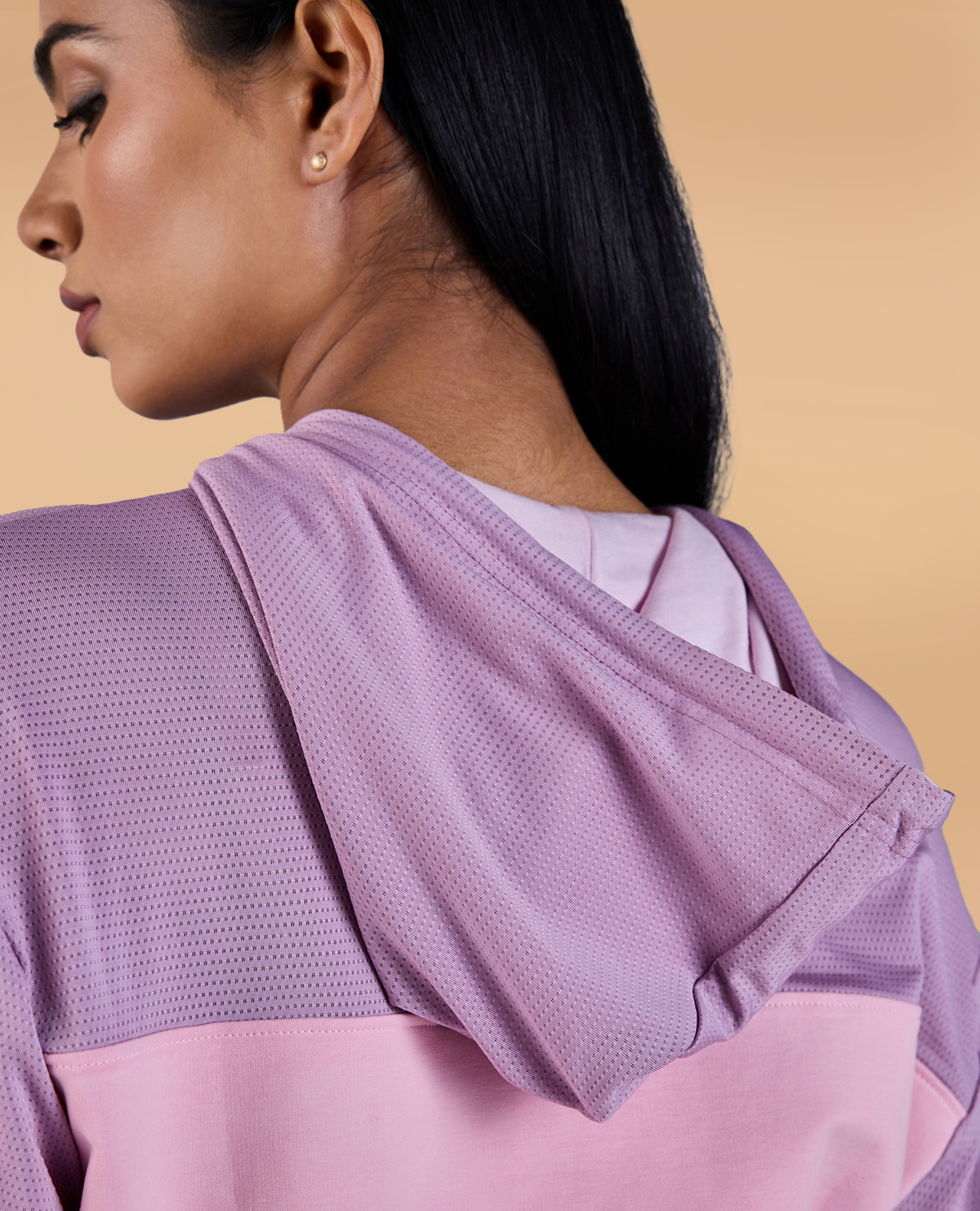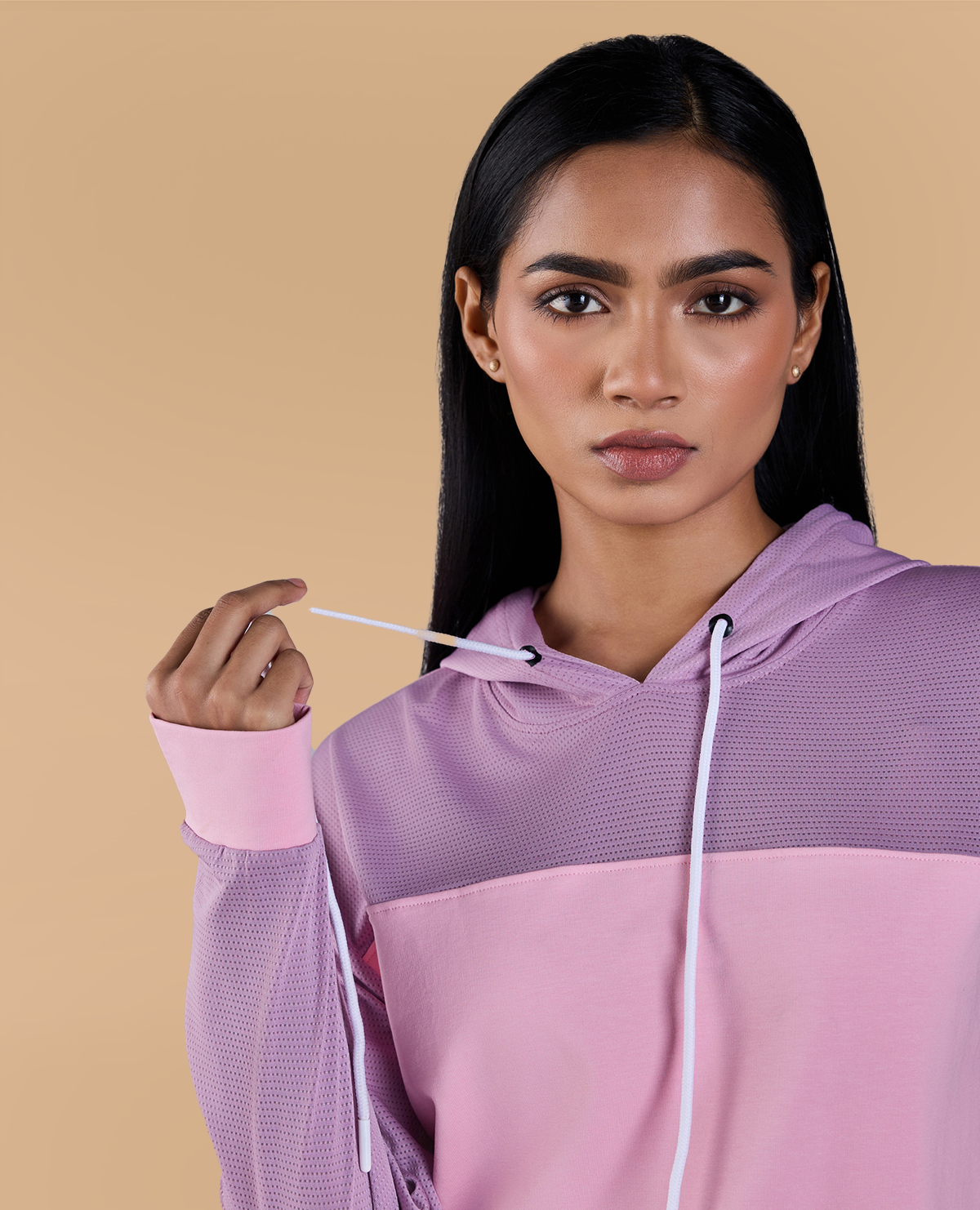 Step into the future of cozy chic with our softest Cotton Hoodie. Featuring a round neck and a vibrant color block mesh insert, it's your only ticket to trendsetting comfort.