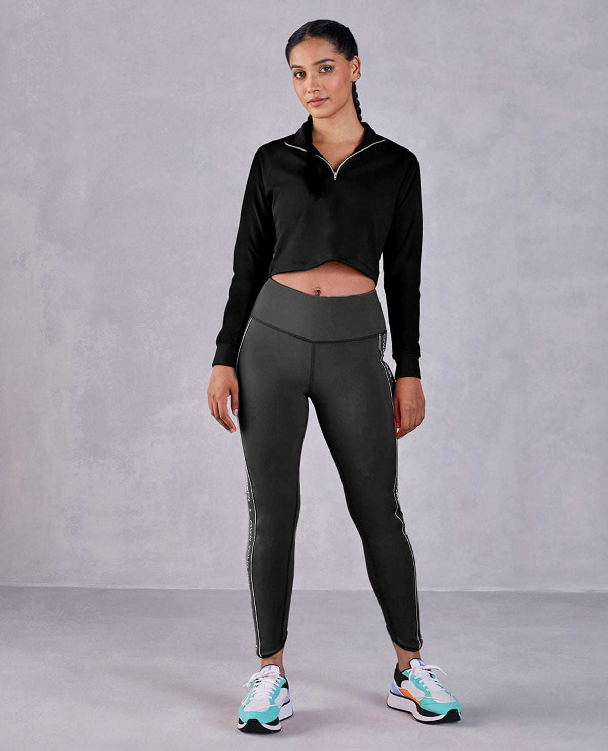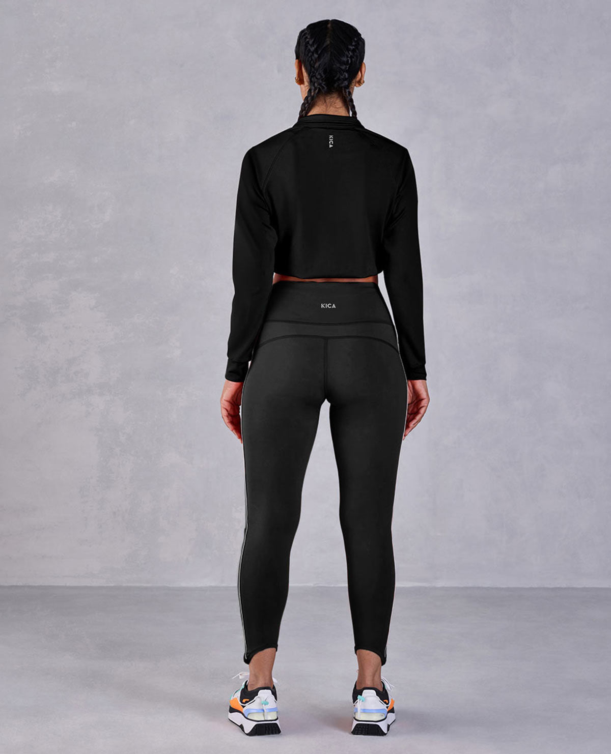 Full Sleeve Running Top & High Waisted Leggings In Second Skin Fabric Black