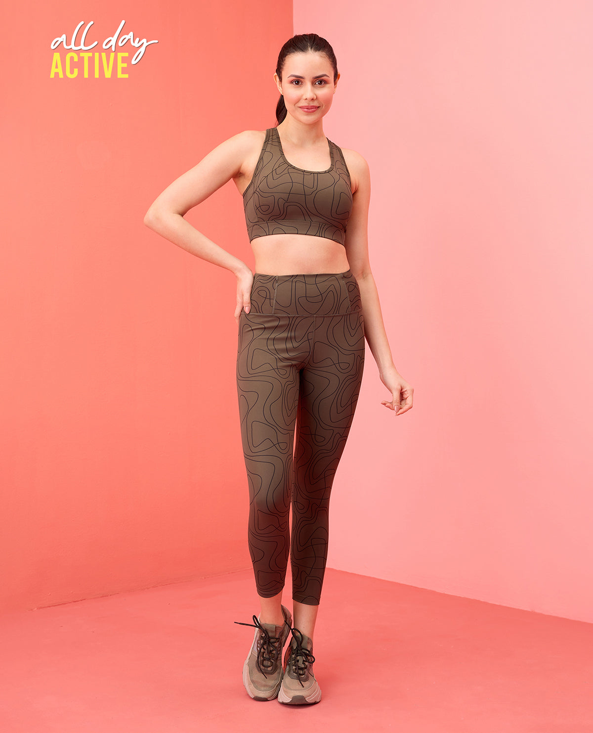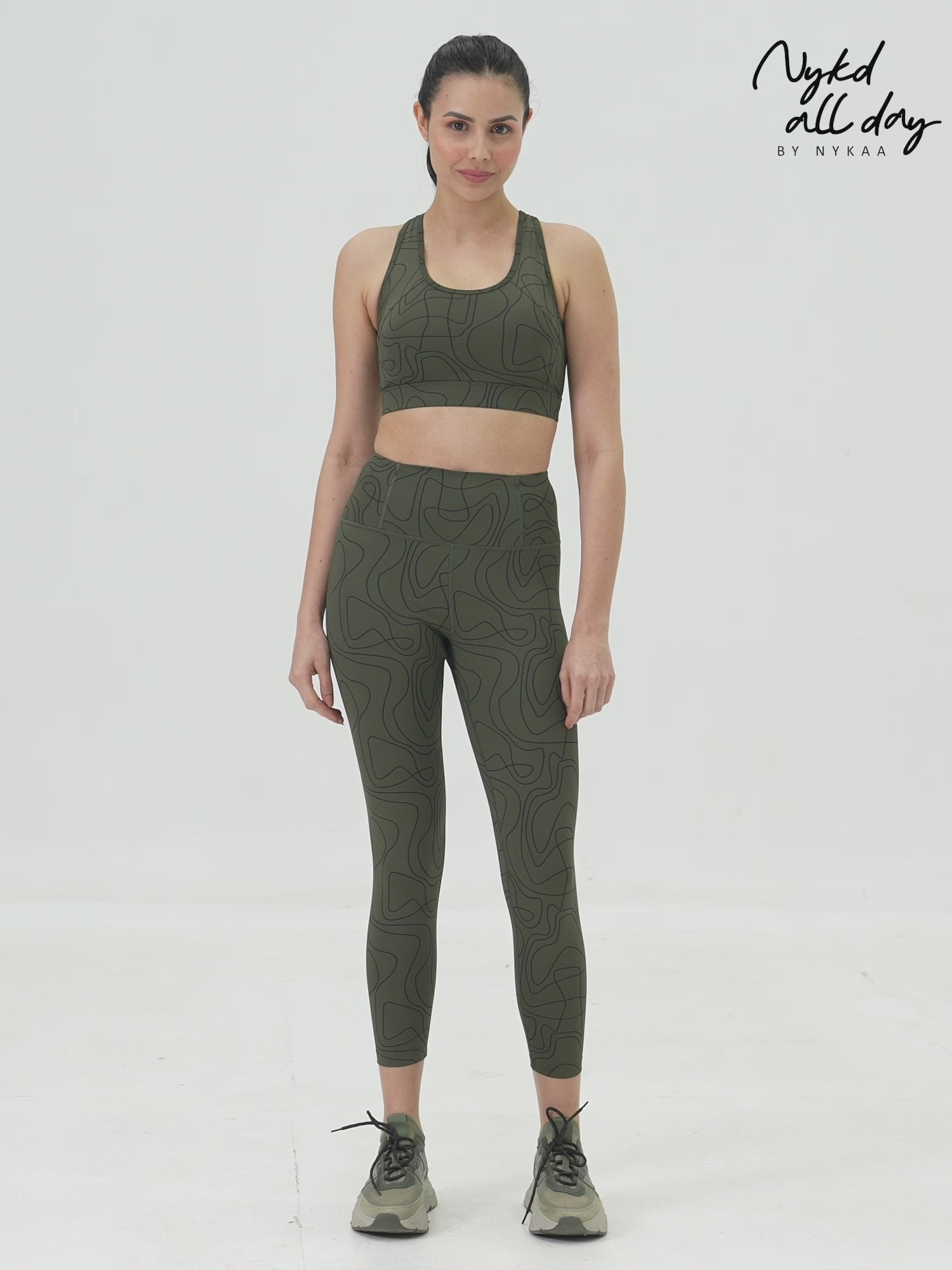 Nykd All Day High rise Trendsetter Printed Legging- NYK121-Doodle Olive Print