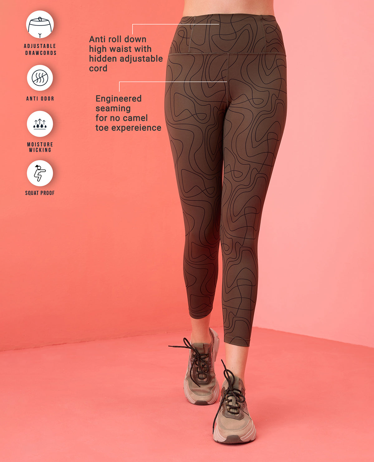 Breathable with NY-Dry technology, high waist with firm grip and squat proof.