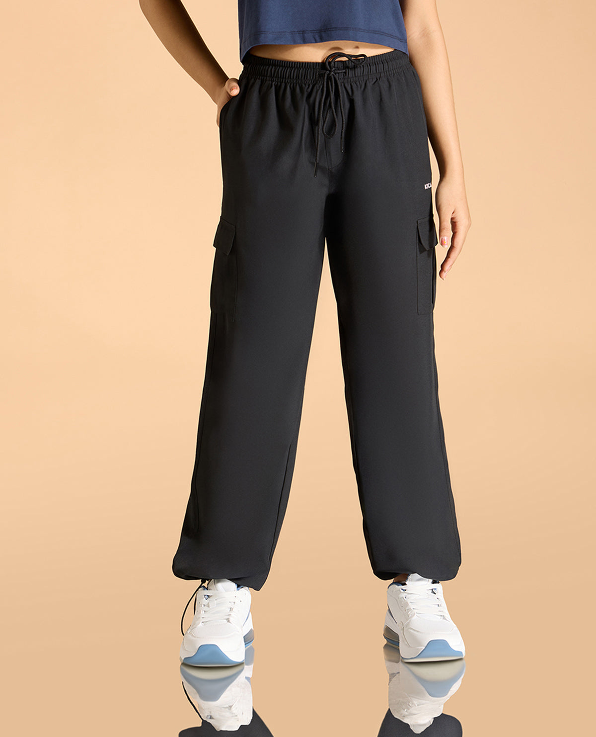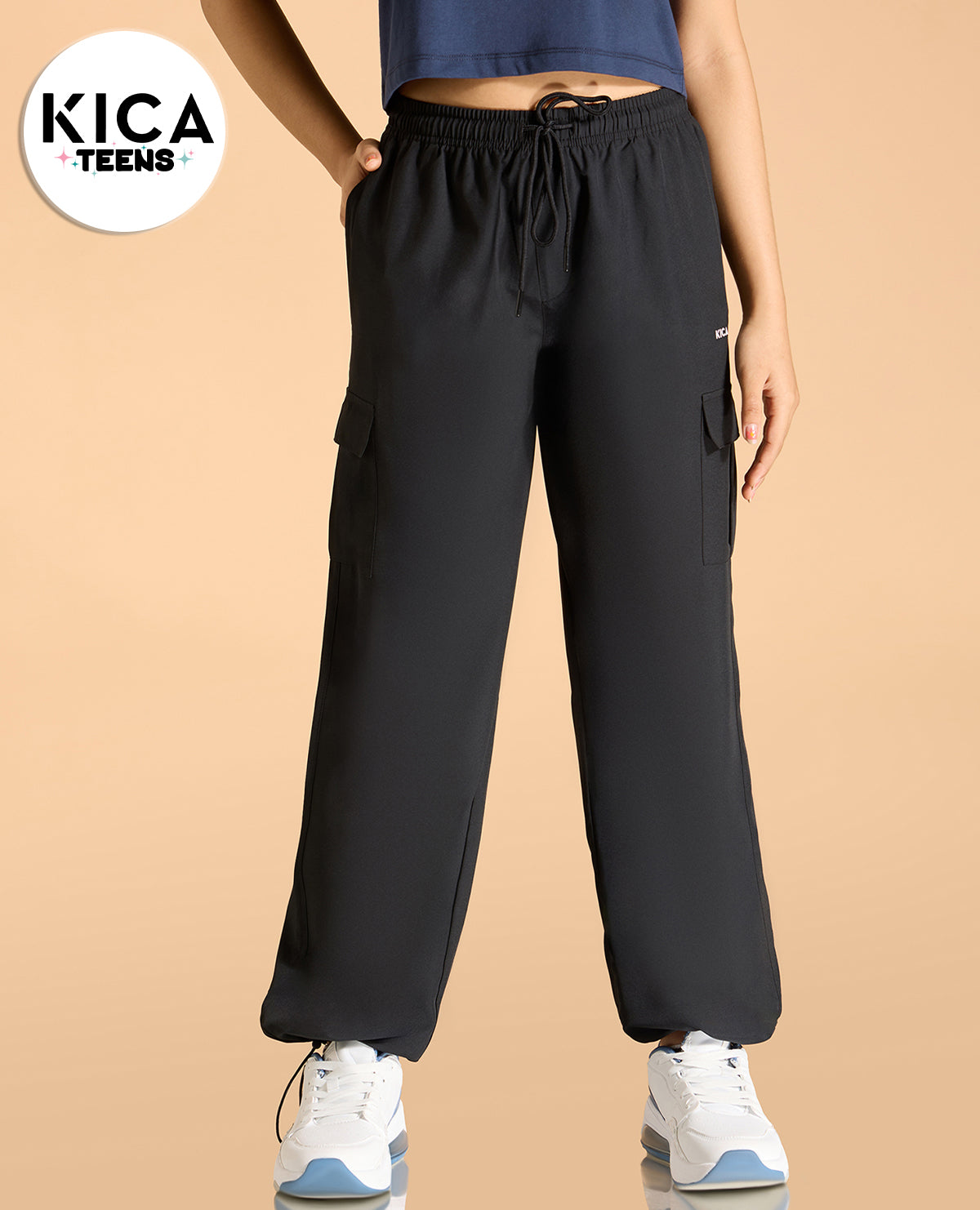 | Mid Rise Solid Lightweight Cargo Pants For Girls