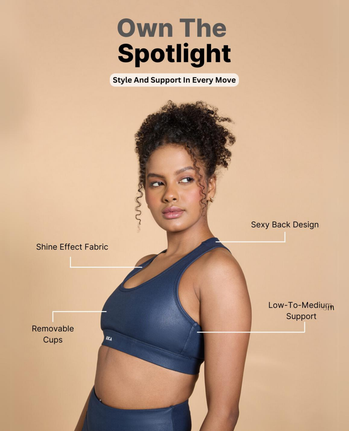 With removable paddings and low-to-medium support, this glossy-looking sports bra is perfect for those who refuse to compromise on comfort and edginess. Get ready to look as powerful as you feel!
