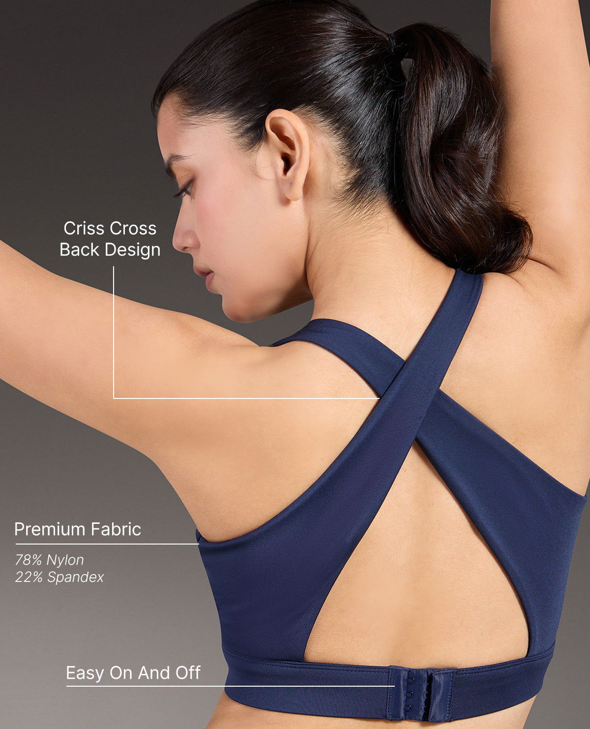 - Removable cups so you wear the sports bra according to your preference.