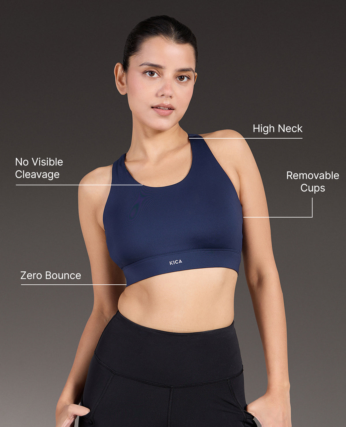 A: Kica offers sports bras in different impact levels to meet your specific activity needs. Our low-impact sports bras are suitable for activities like yoga or walking. For medium-impact activities such as cycling or hiking, we have sports bras that provide balanced support. And for high-impact activities like running or intense workouts, our high-impact sports bras offer maximum support and minimize bounce.