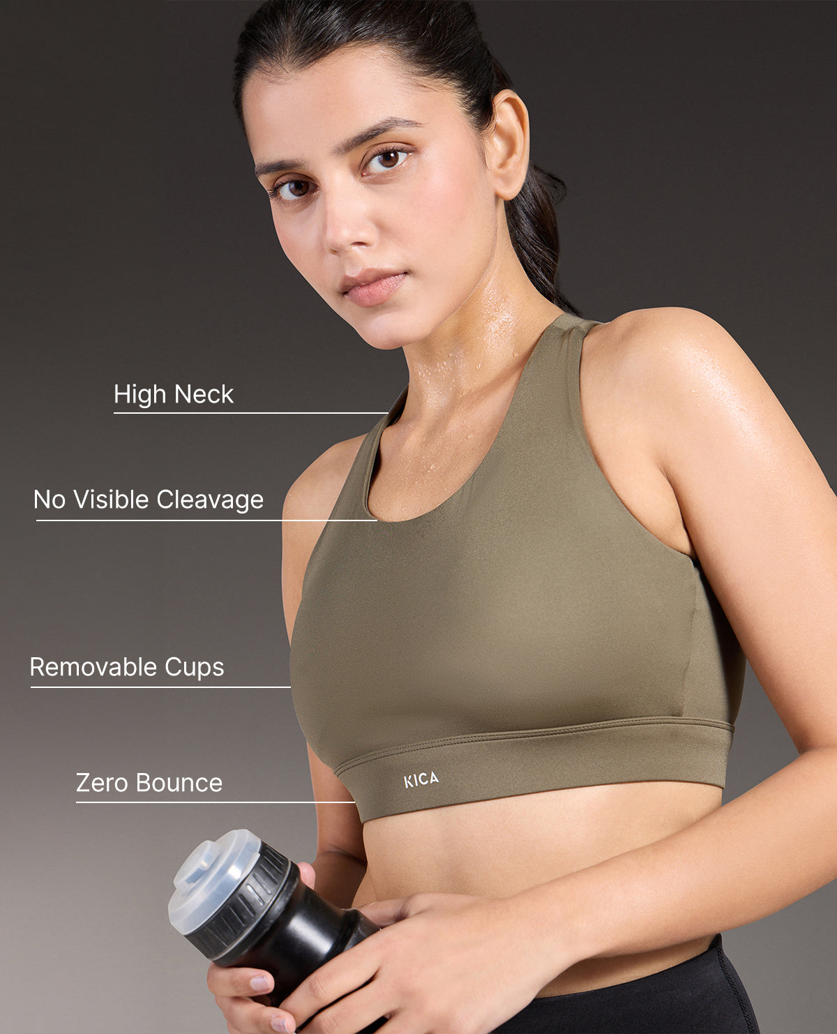 A: Kica sports bras are designed with features to ensure maximum support and comfort. Look for adjustable straps that allow you to customize the fit and find the right level of support for your body. Wide, padded shoulder straps help distribute weight and reduce pressure on your shoulders. Our sports bras also feature a supportive underband and encapsulated cups for excellent support and shape. Additionally, moisture-wicking and breathable fabrics are incorporated to keep you cool and dry during your workouts.