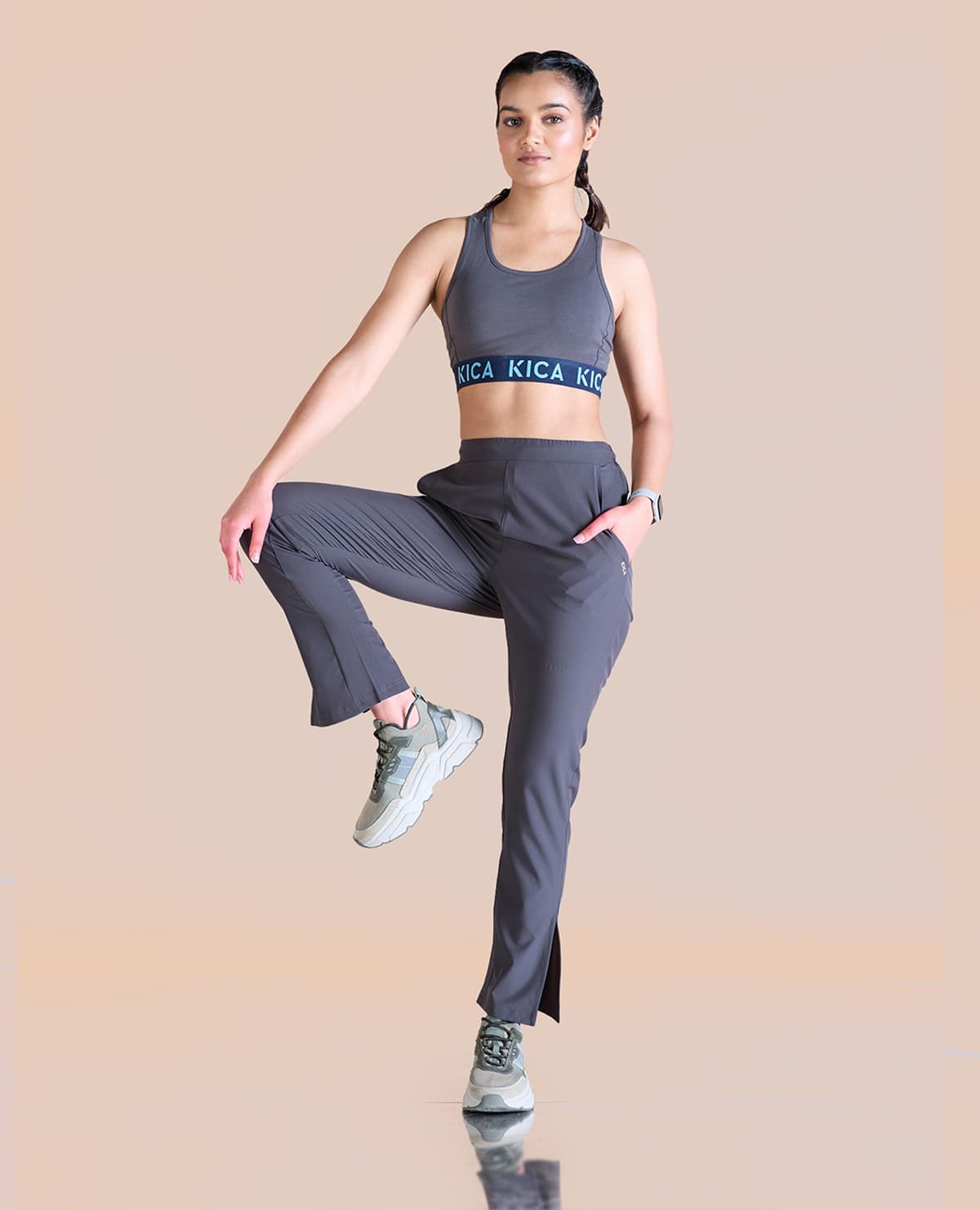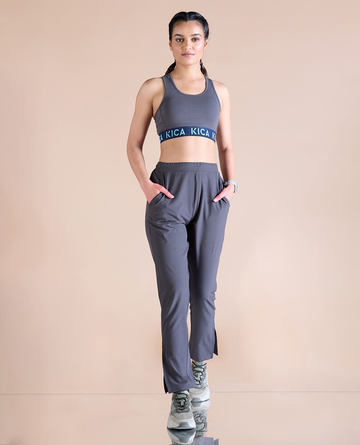 Serious pant goals. The Max Dry Travel pants are made from a Nylon Spandex blend, which means it's super lightweight, woven, and has a loose, straight-leg silhouette, side pockets, and slits at the ankle. Pair it with a blazer and cute statement bra or crop top. The perfect stylish, easy-to-pair with, pair of pants.