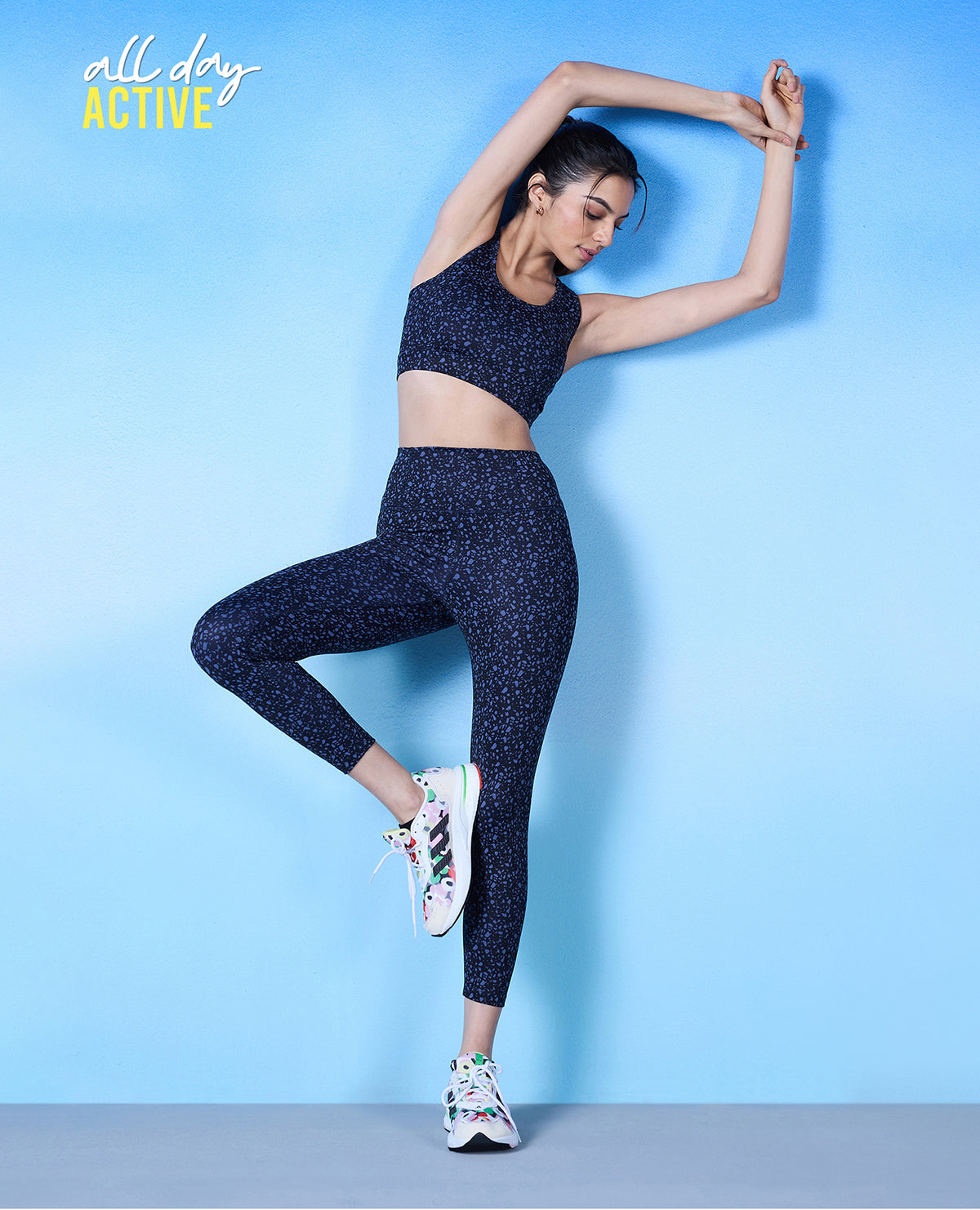 Nykd All Day High rise Trendsetter Printed Legging- NYK121-Scatter Navy Print