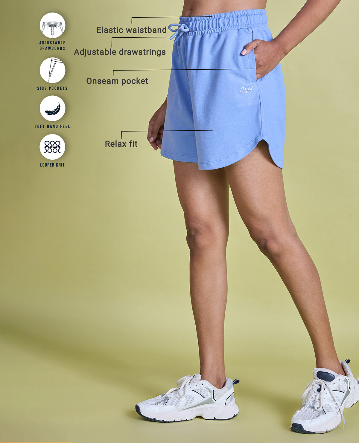 Nykd All Day Knit Terry Shorts - NYLE503 - Hydrangea