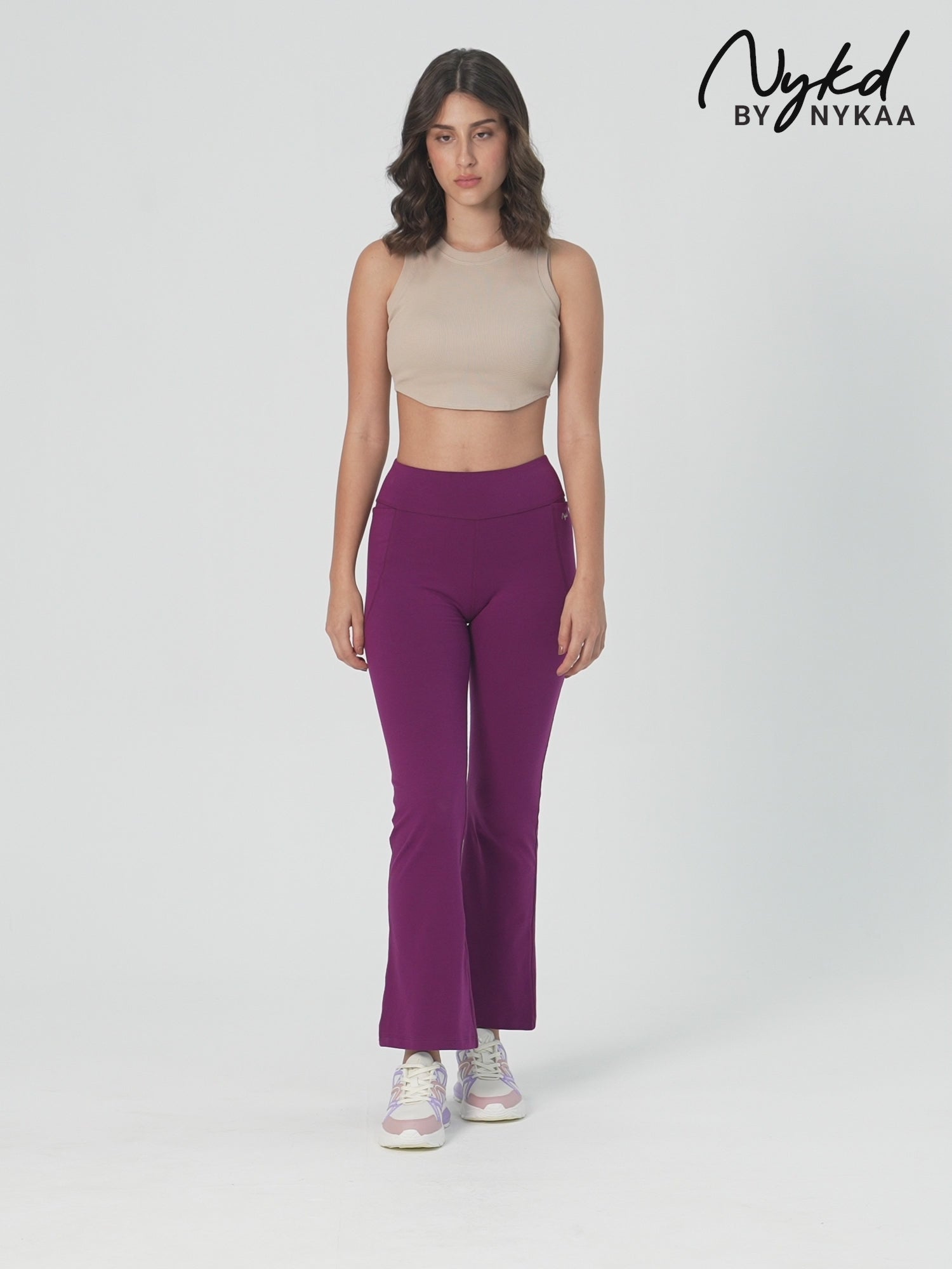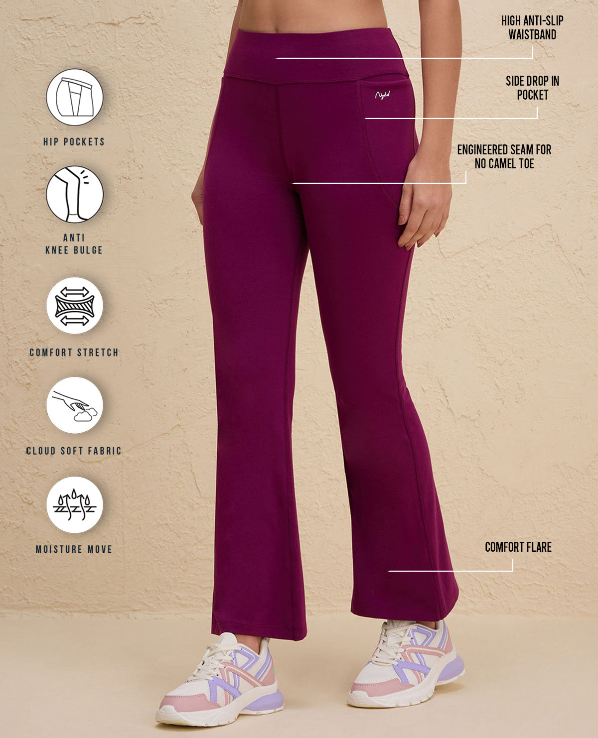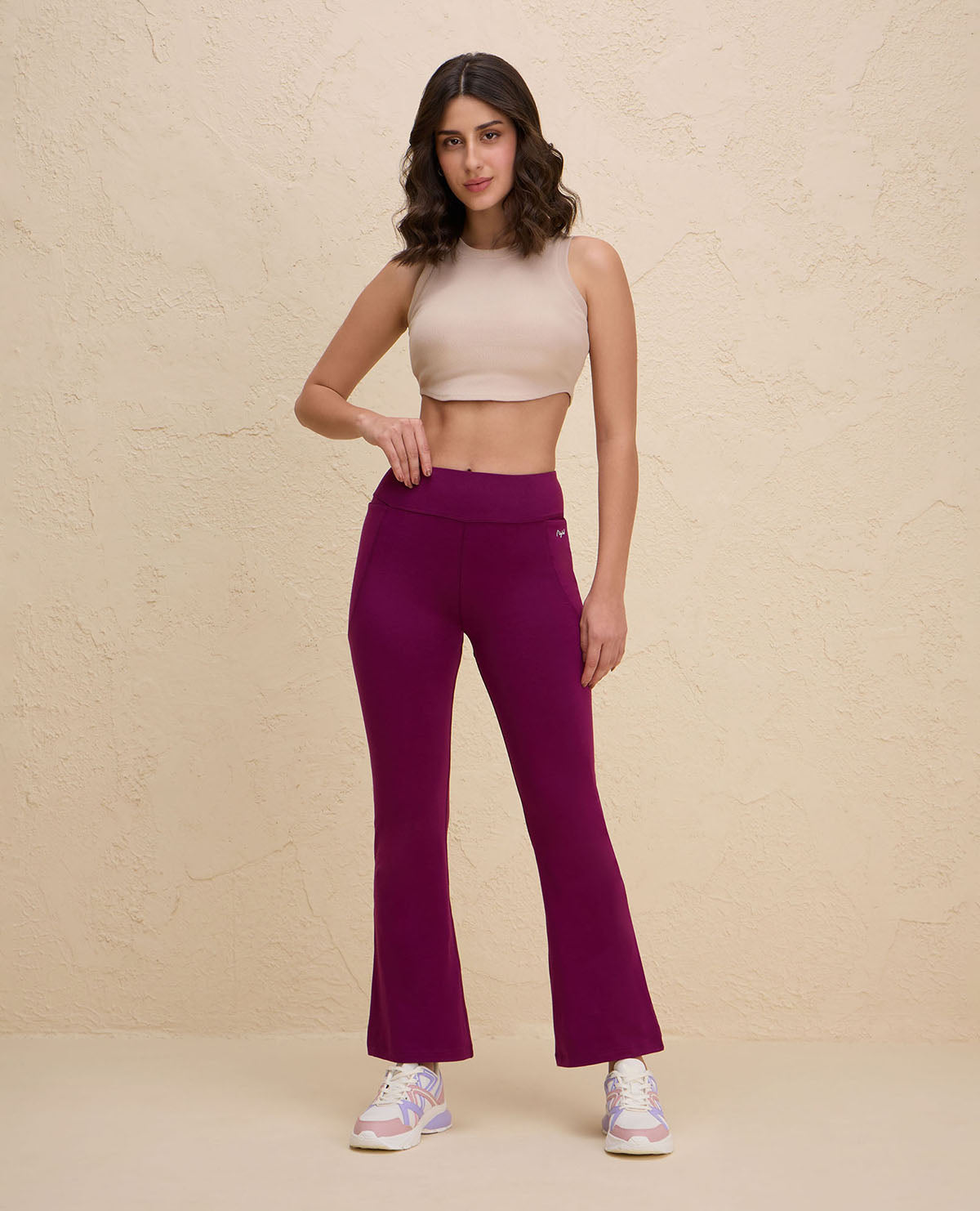 Nykd By Nykaa Iconic Cotton Flare Leggings with Pockets-NYAT503-Wine