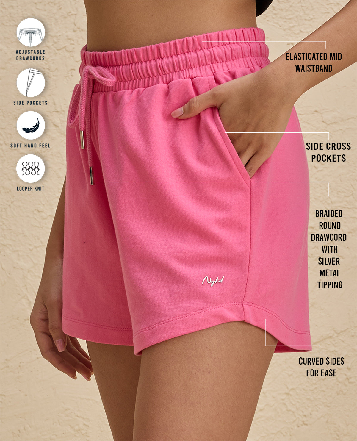 Nykd By Nykaa Summer Essential Peppy All Day Comfort Cotton Terry Shorts -NYAT504-Pink