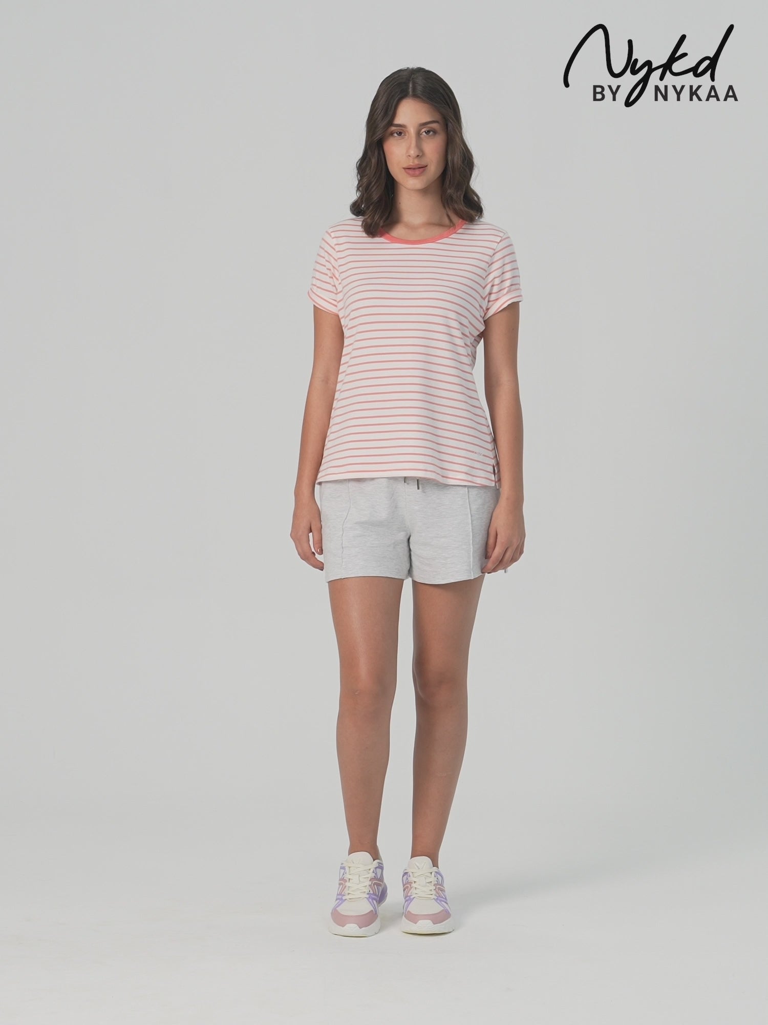 Nykd By Nykaa Summer Essential Smocked Waist Lounge Cotton Terry Shorts -NYLE603-Grey Melange