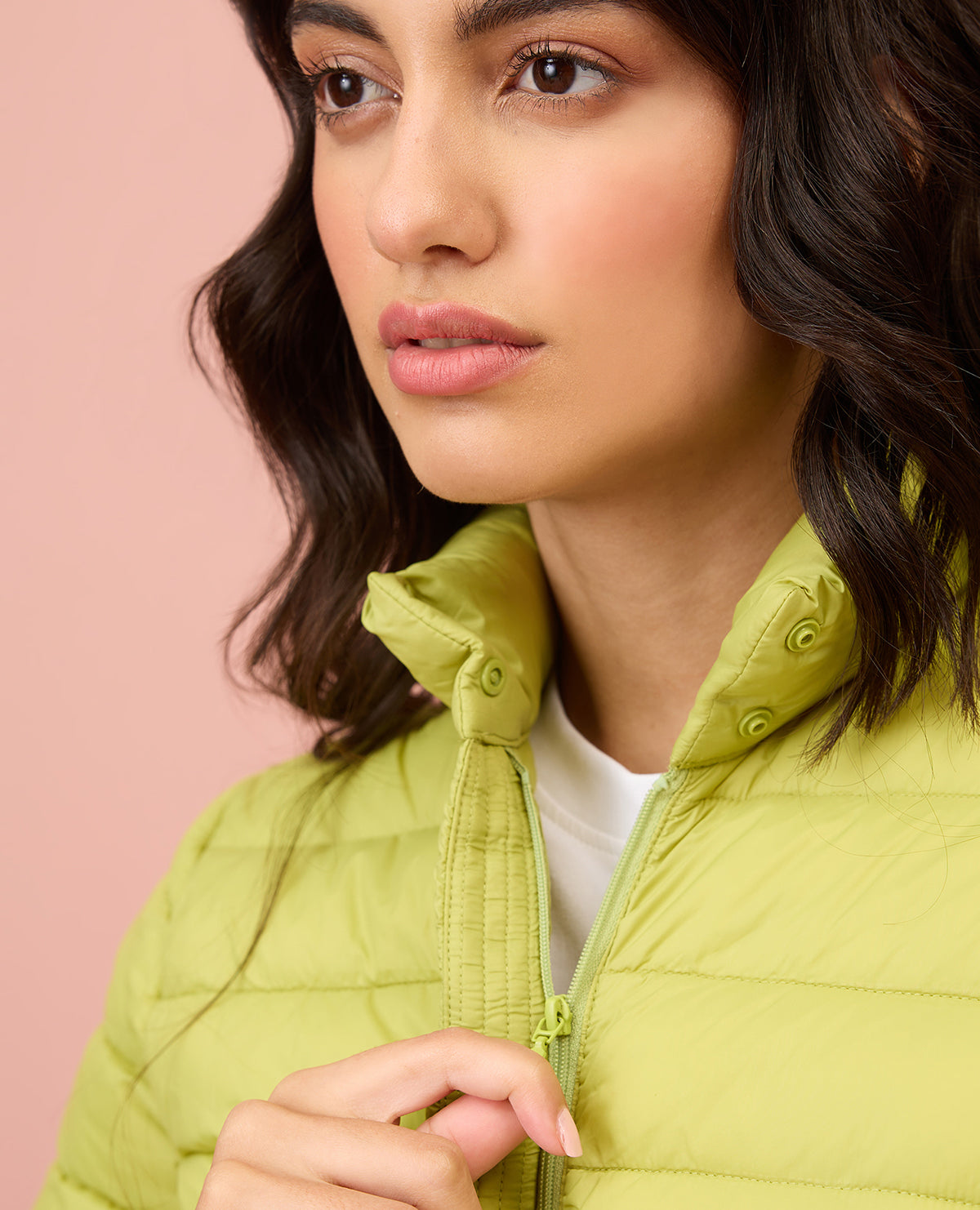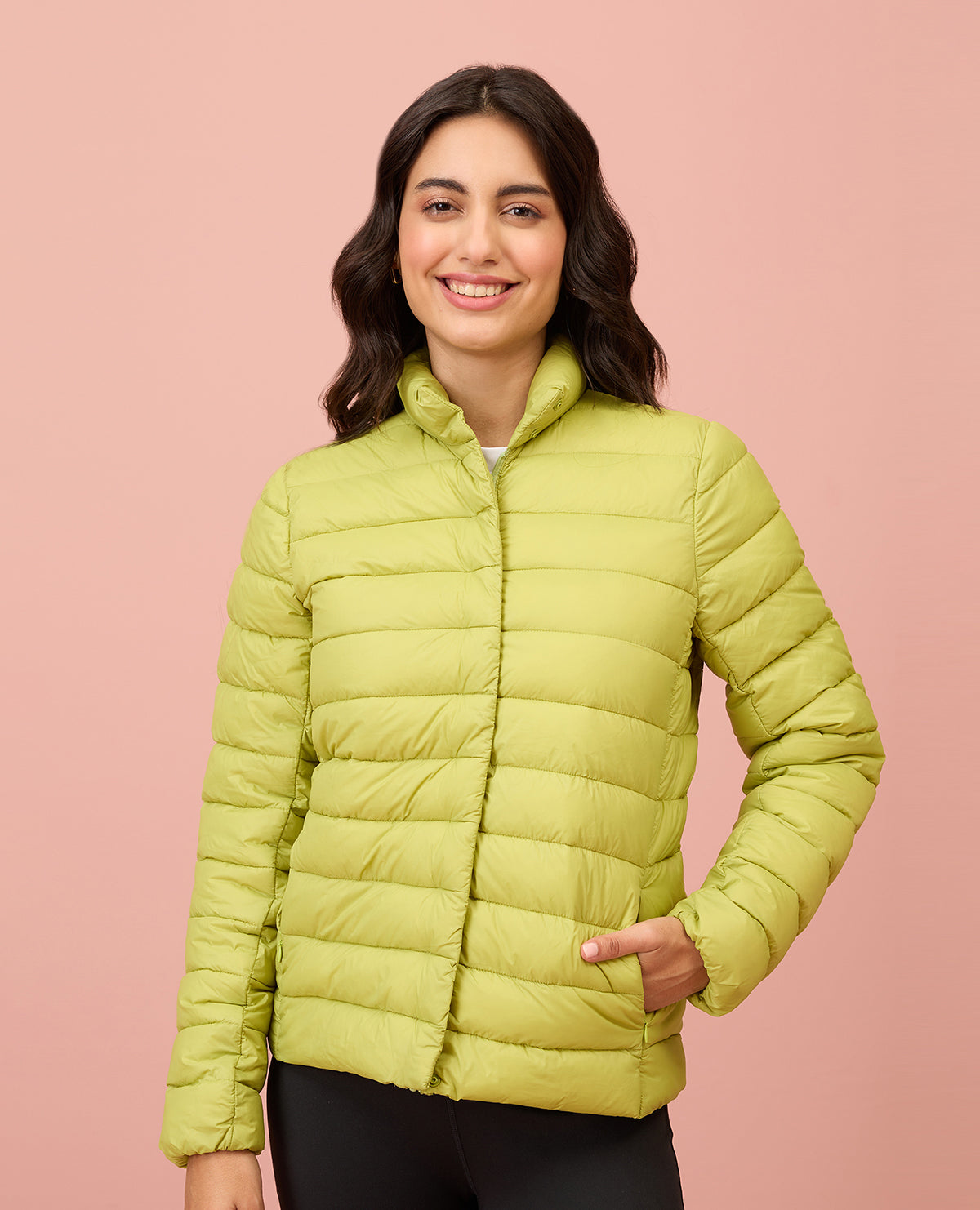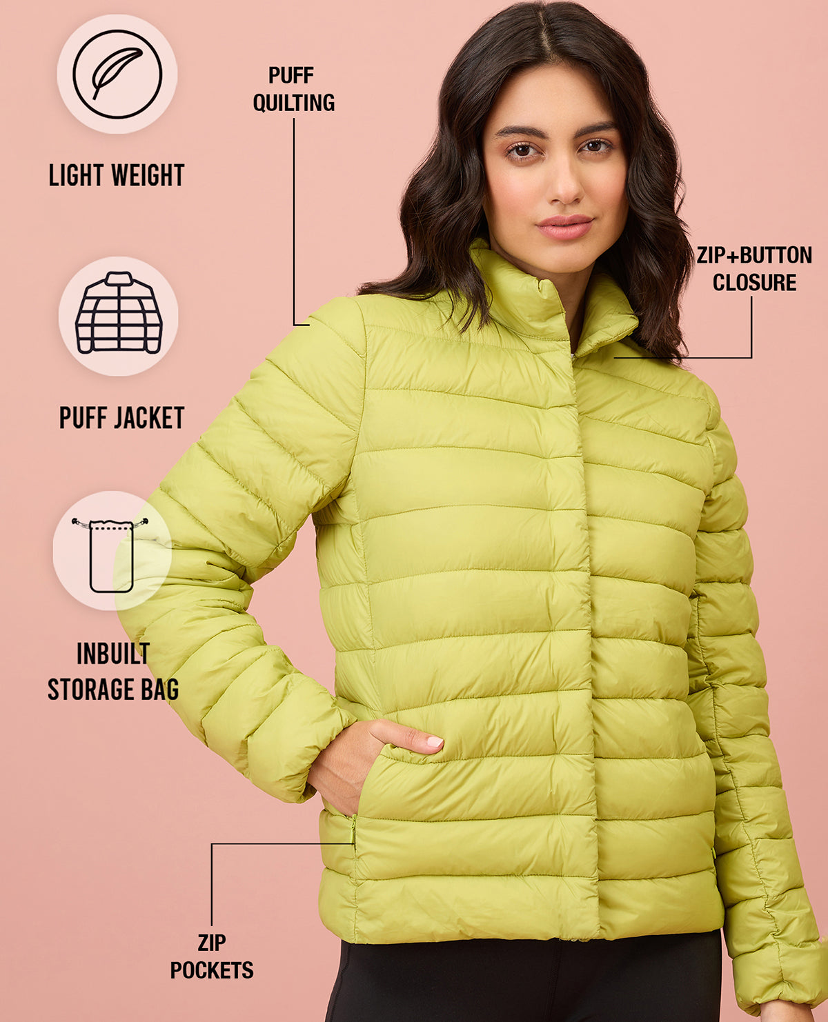 NYKD By Nykaa Ultra Light Weight Puffer Jacket with Inbuilt Bag (Set of 2)-NYAT405-Green