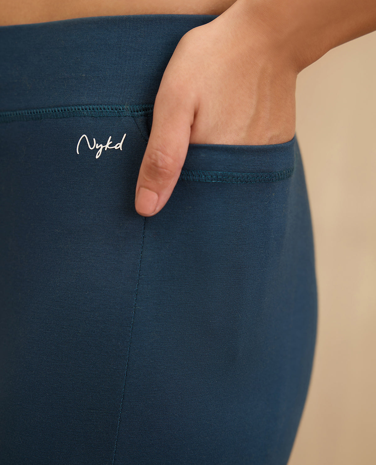 NYKD By Nykaa Comfort Leggings with Pockets! - NYAT401-Blue