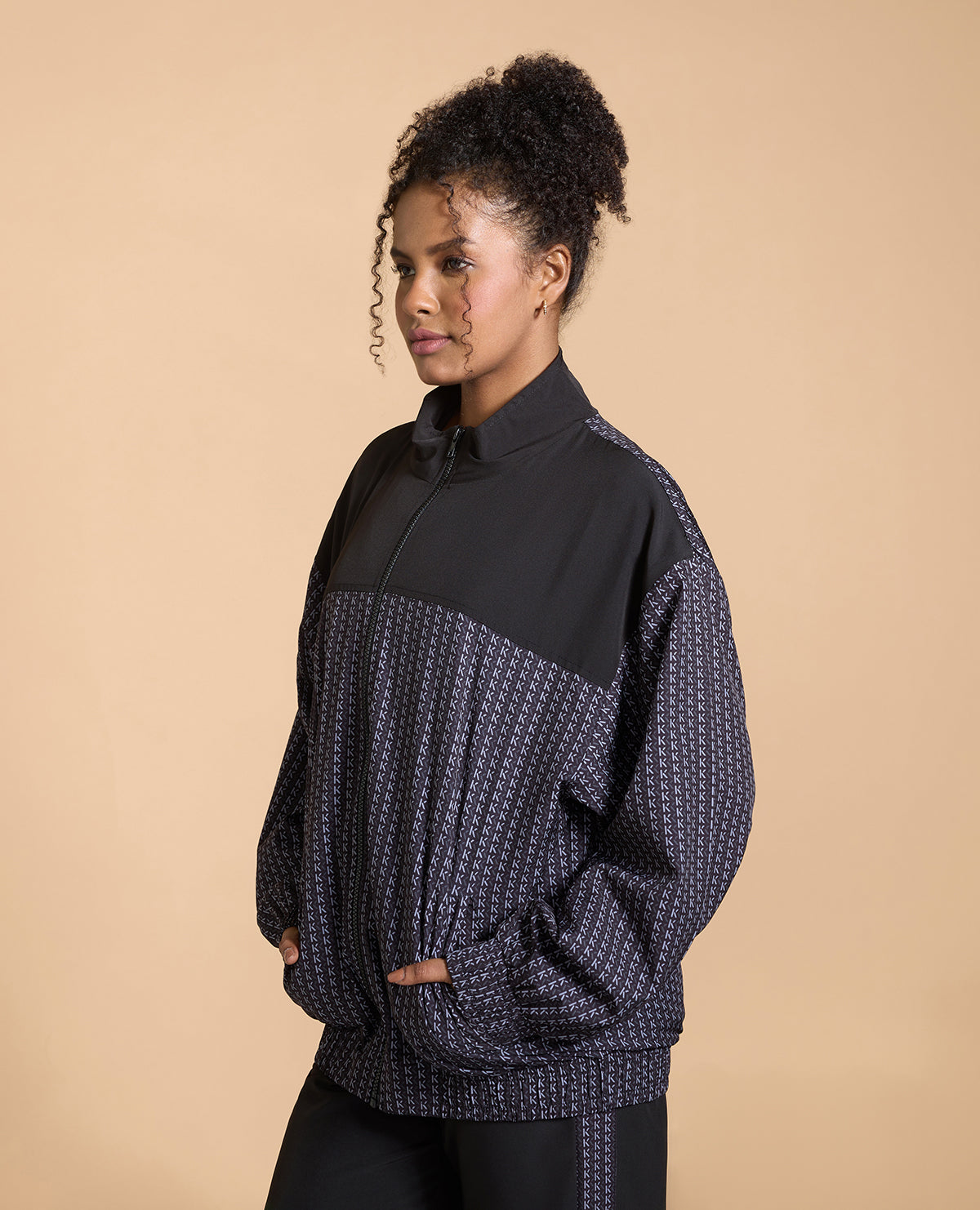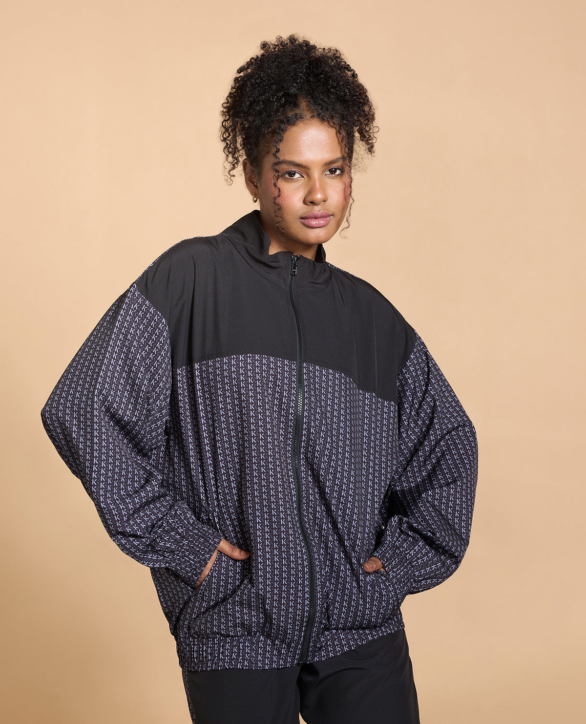 An Oversized Bomber Jacket is the only winter wardrobe essential you need. With an oversized fit, color-blocked panels, elasticated cuffs, and bottoms, this bomber is a charmer. The unique Kica print is gonna make you look runway-ready. Pair with our Printed Lightweight Tracks and make heads turn cause "Chica, you look fabulous!" Key Features: - Oversized Fit - Bomber Style - Unique Kica Print - Two Side Pockets - Colourblocked Panel - Elastic Bottom Hem - Elasticated Cuffs