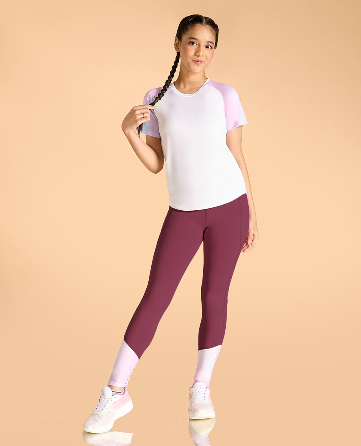 Regular Colourblock Tshirt and High Waisted Colourblock Stretchable Leggings Set