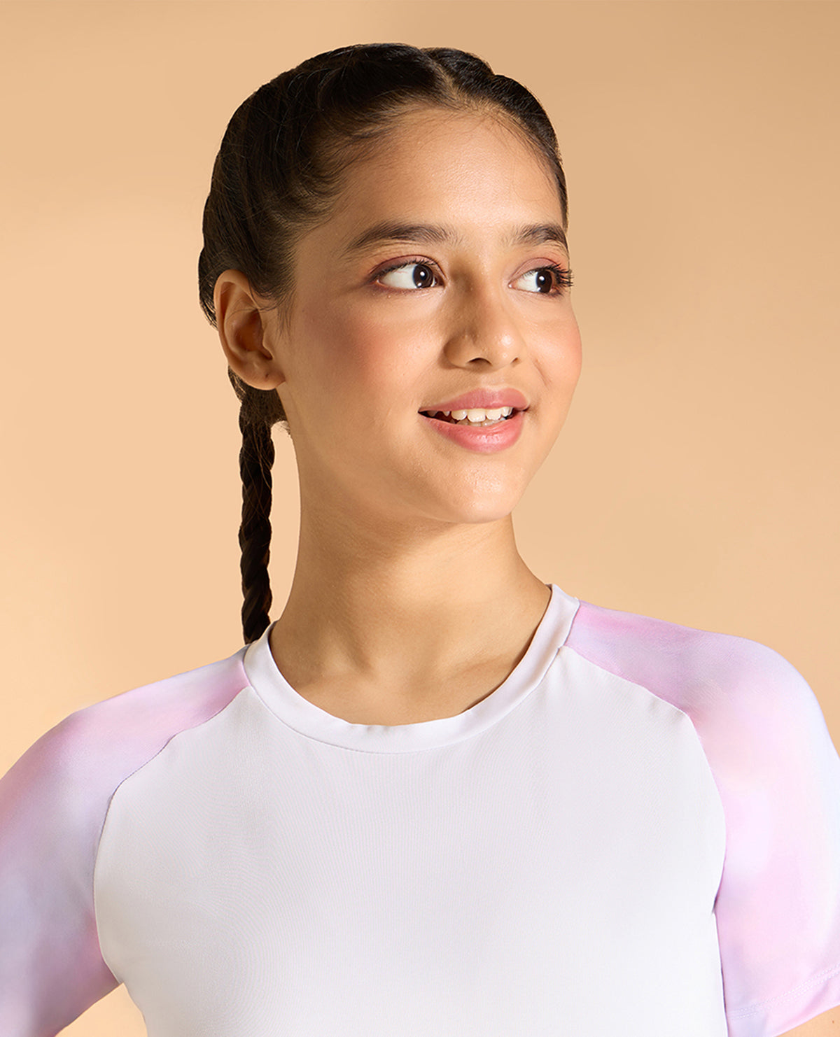 This regular fit top brings out your bubbly personality with some fun colour play and fit that is perfect to adapt to a teenage girl's changing body.