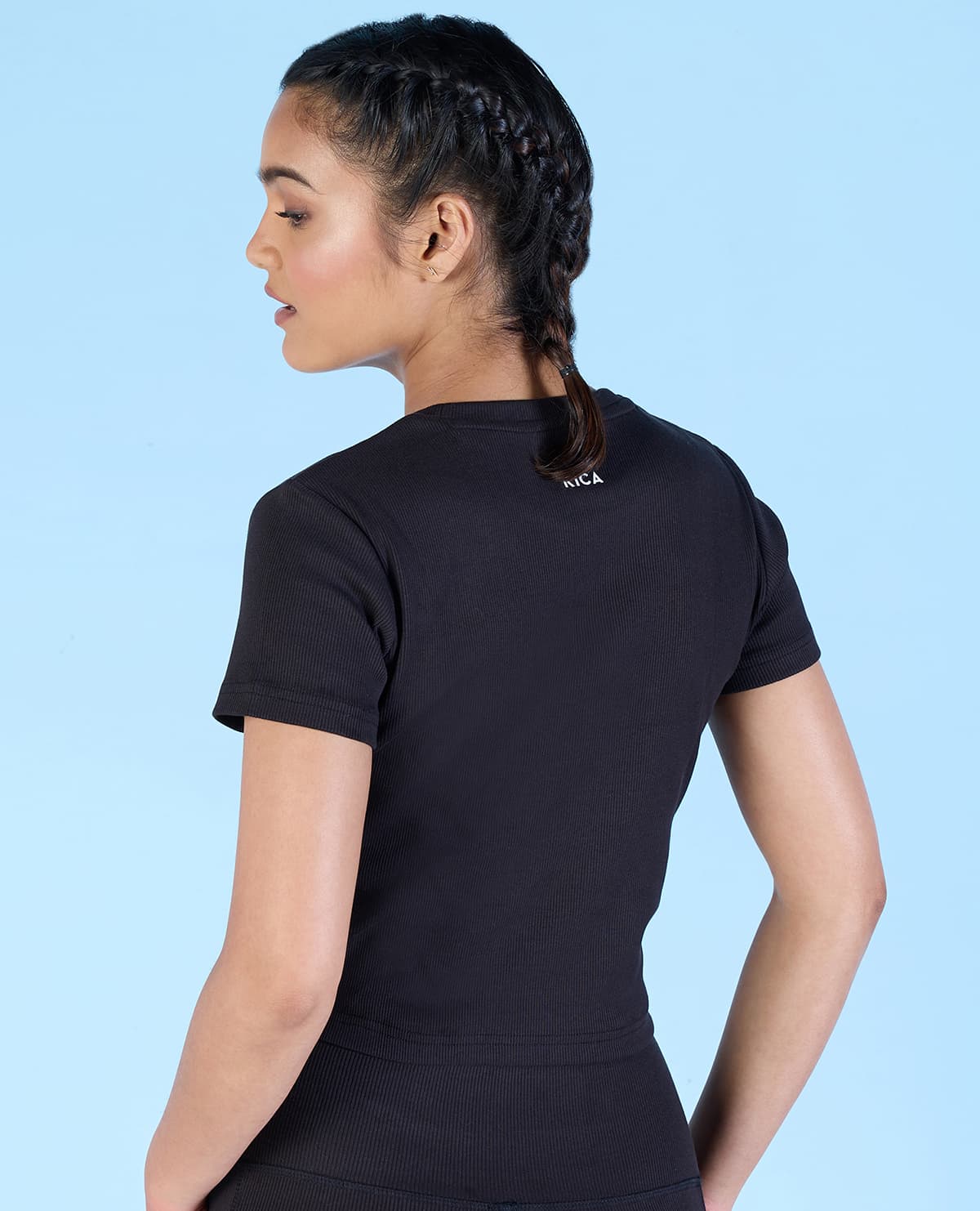 Ribbed Cotton Half Sleeve Top: