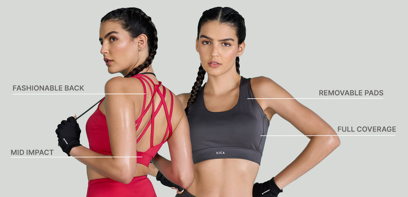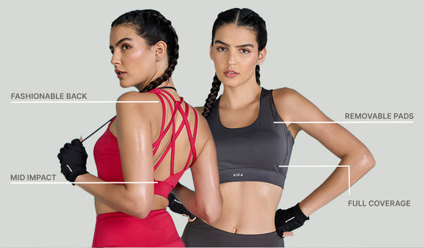 A: Kica offers sports bras in different impact levels to meet your specific activity needs. Our low-impact sports bras are suitable for activities like yoga or walking. For medium-impact activities such as cycling or hiking, we have sports bras that provide balanced support. And for high-impact activities like running or intense workouts, our high-impact sports bras offer maximum support and minimize bounce.
