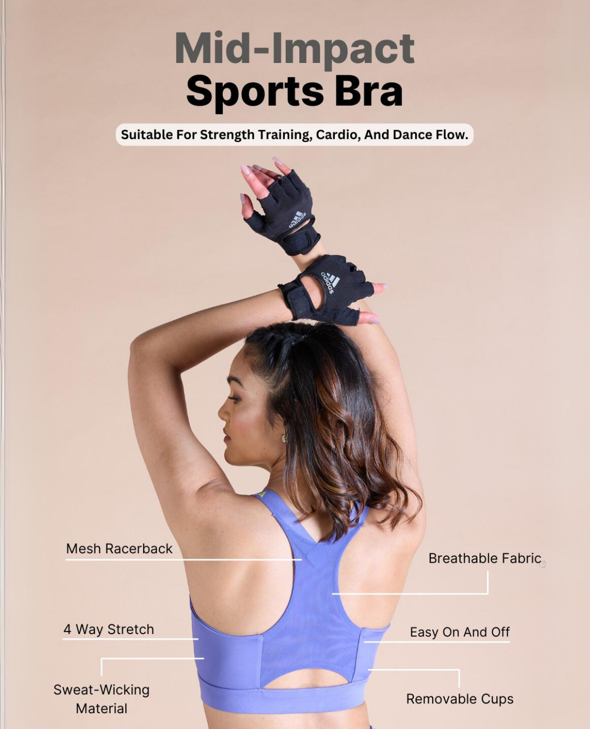 Try the Medium-Impact Zip Sports Bra for strength training, cardio, and dance flow.