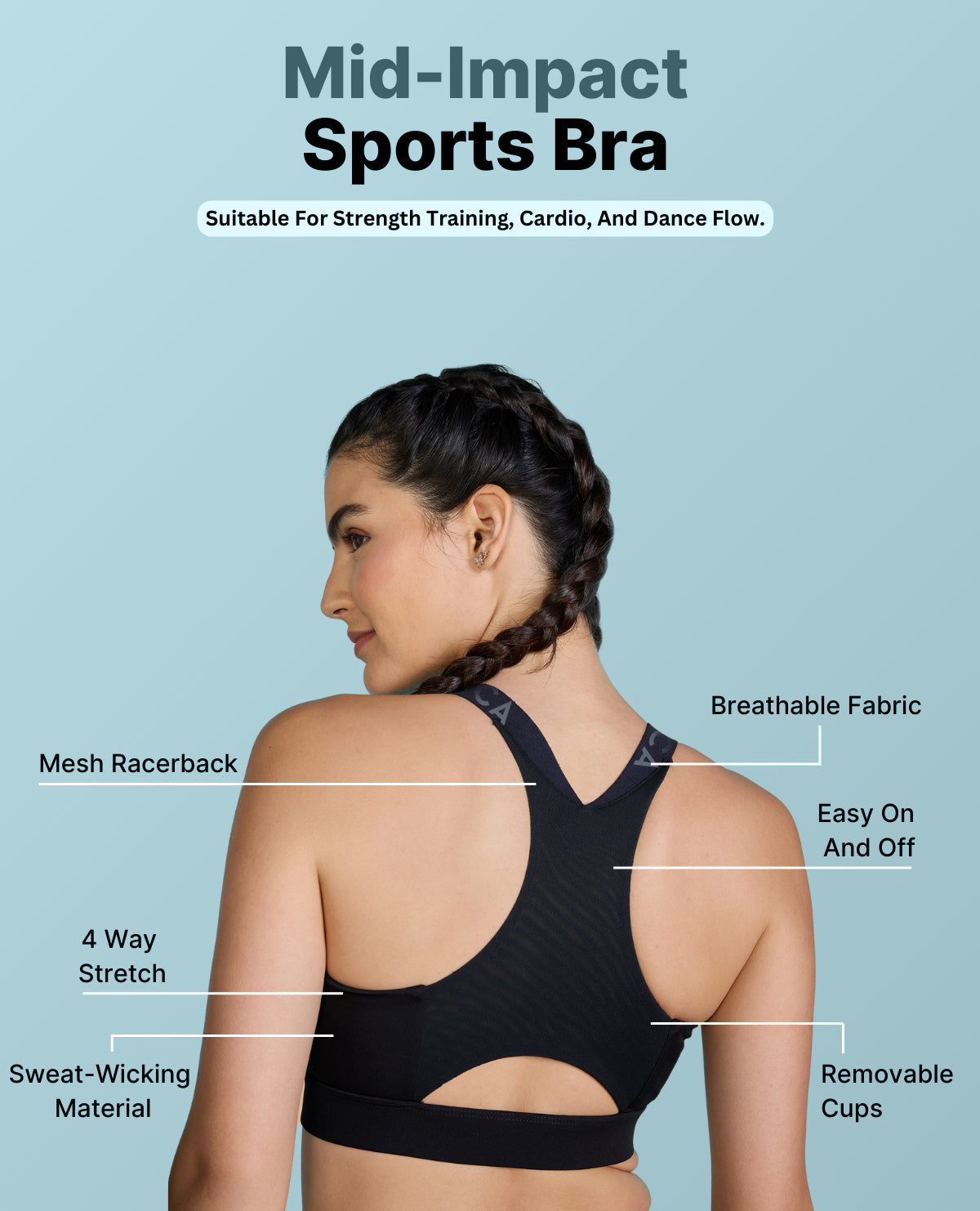 Try the Medium-Impact Zip Sports Bra for strength training, cardio, and dance flow.