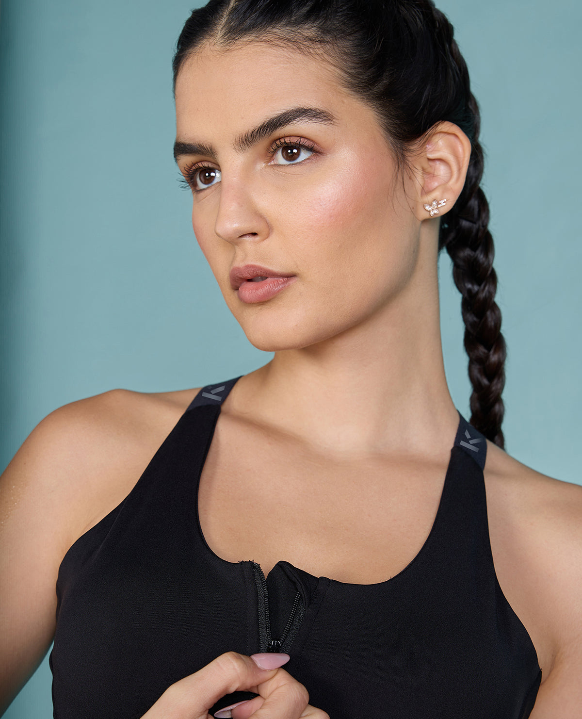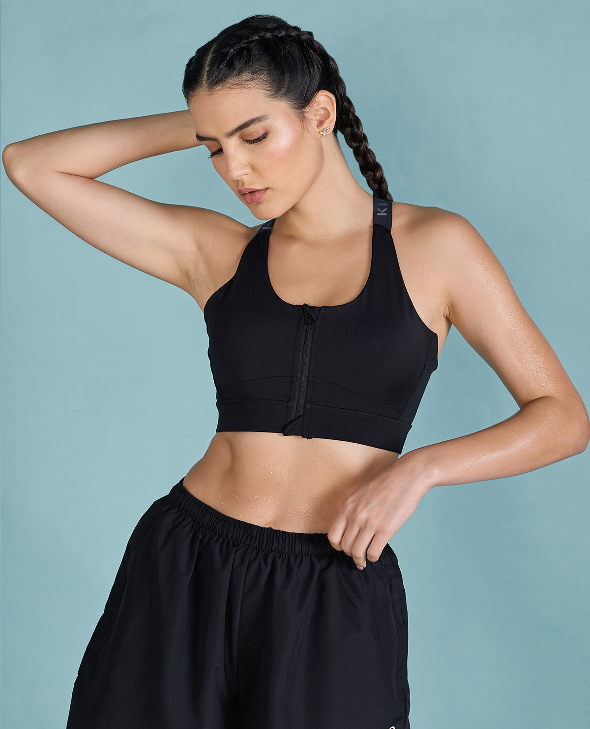 In our Second SKN fabric with an added mesh racerback, this Zip Sports Bra is designed for the utmost functionality, breathability, and quick-drying features.