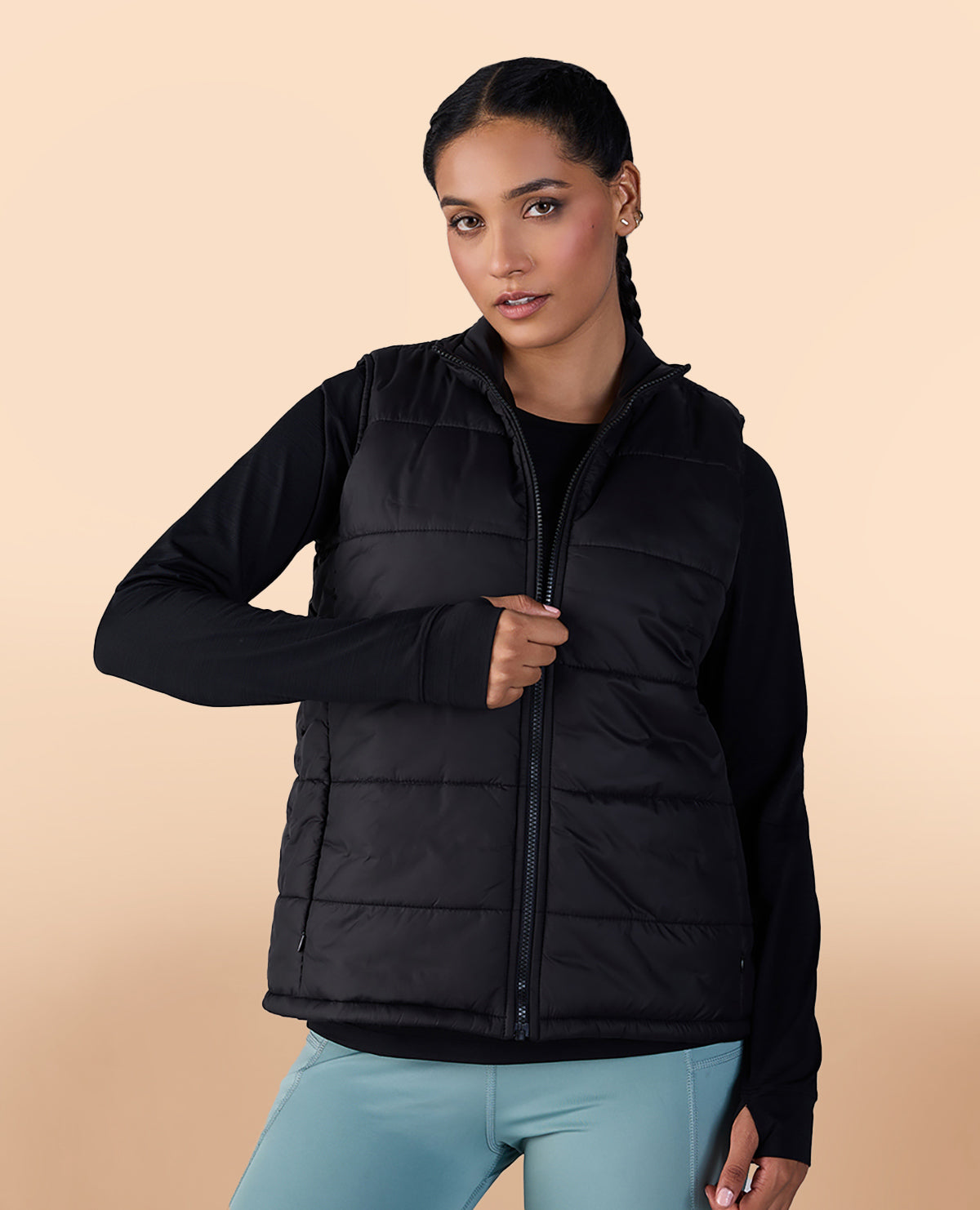 A timeless piece of redefined fashion, our Sleeveless Puffer Jacket turns your basic into uber cool! Featuring a high-collared neck, and side pockets for essentials, this is the ultimate winter look. Take it from bed to work, because it's got you covered.