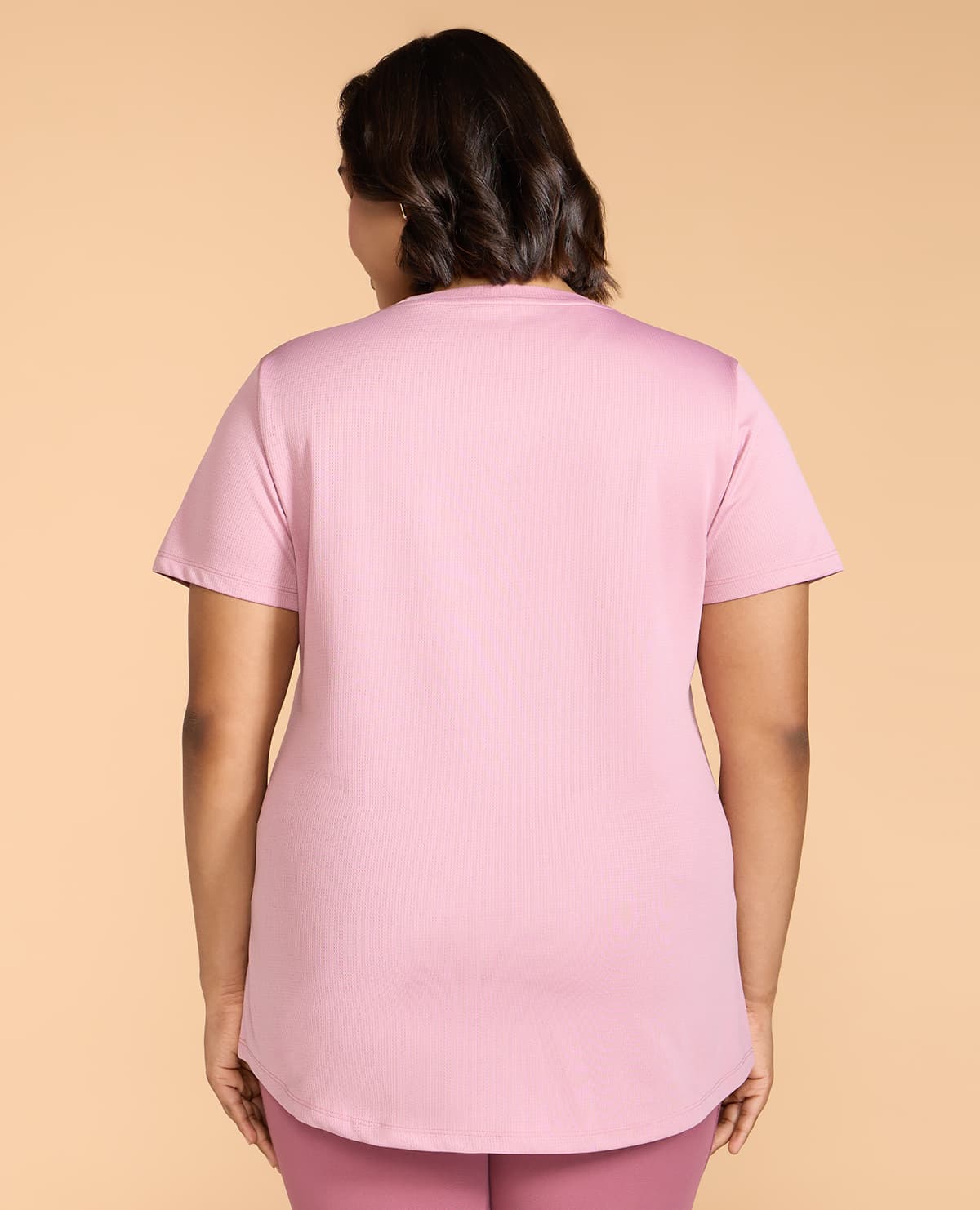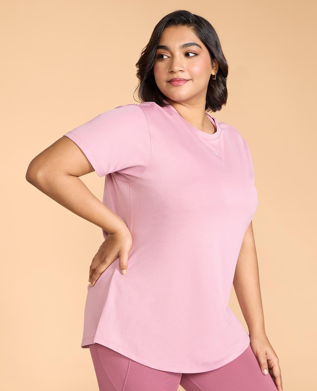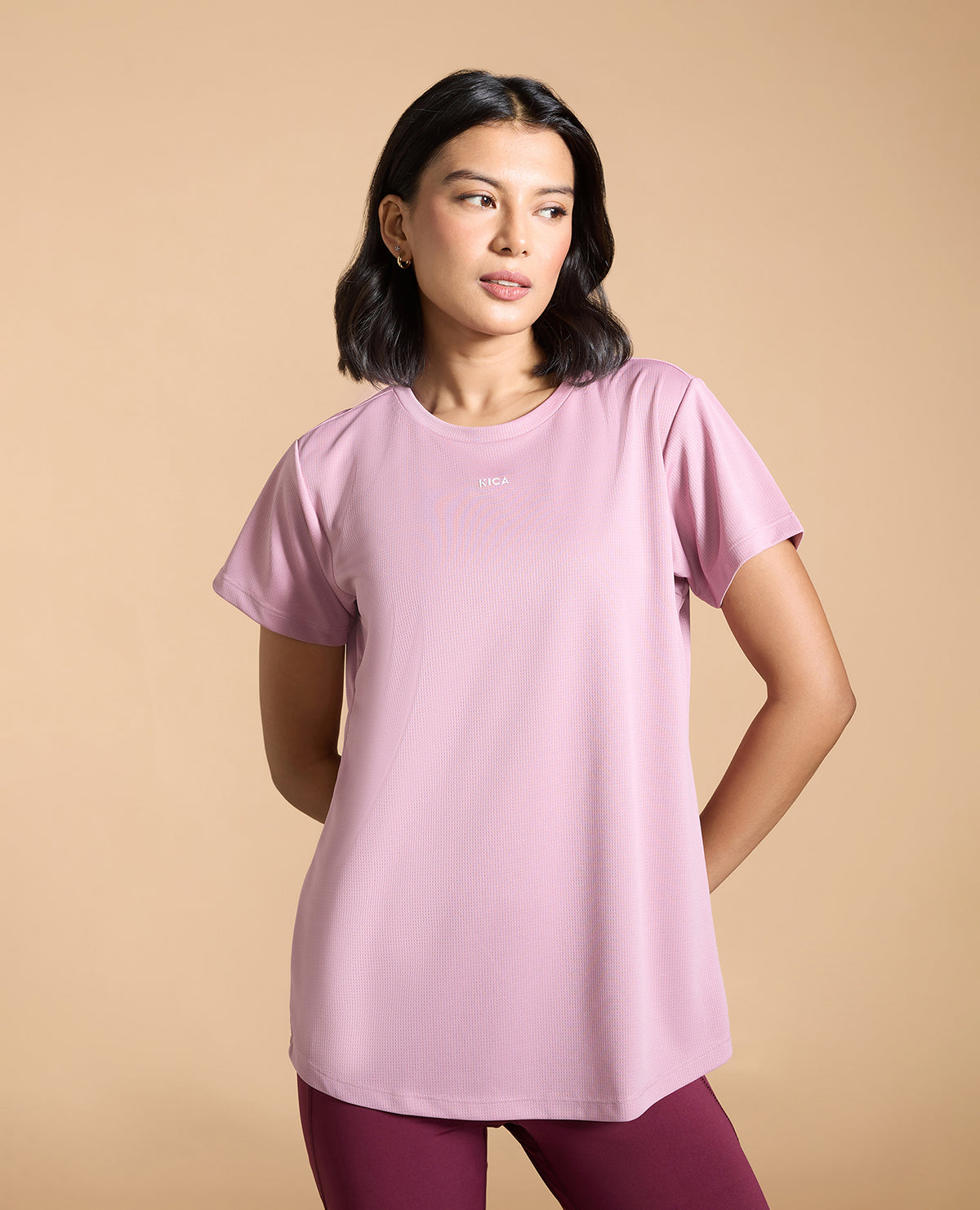 For all the chicas who prefer longer lengths in active tops, we have the perfect product for you! Our basic top covers your hips and front with a curved hem. It has a relaxed longline silhouette that provides modest coverage for everyday wear. Crafted in a sweat-friendly, airy, and lightweight fabric, this modest-length basic top is suitable for high-intensity workouts like gym & training, running, and dancing.