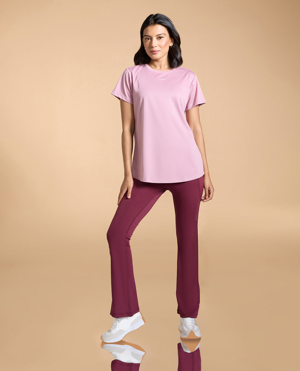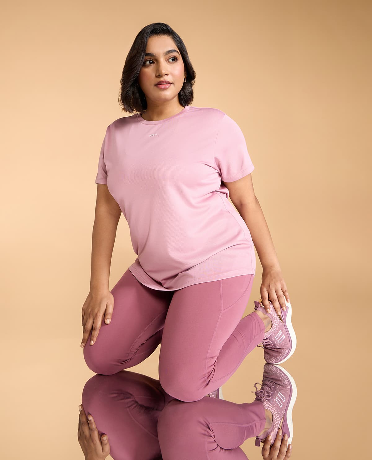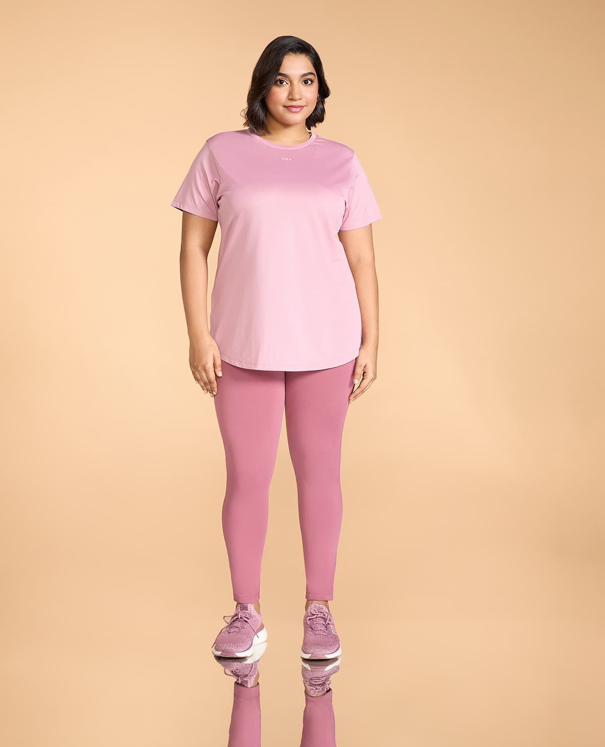 For all the chicas who prefer longer lengths in active tops, we have the perfect product for you! Our basic top covers your hips and front with a curved hem. It has a relaxed longline silhouette that provides modest coverage for everyday wear. Crafted in a sweat-friendly, airy, and lightweight fabric, this modest-length basic top is suitable for high-intensity workouts like gym & training, running, and dancing.