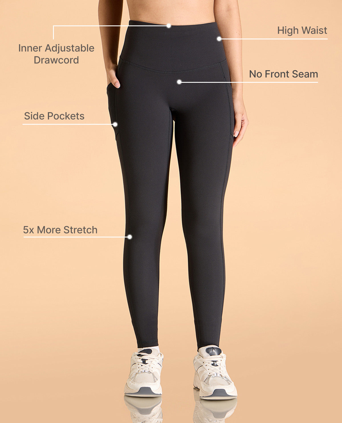 They're stretchable and compressive, giving your body a naturally-flattering curve. With an internal drawcord, you don't need to worry about the waistband being too loose. These leggings hug all your curves. Two side pockets and a coin pocket at the back makes them suitable for when you're on the go!