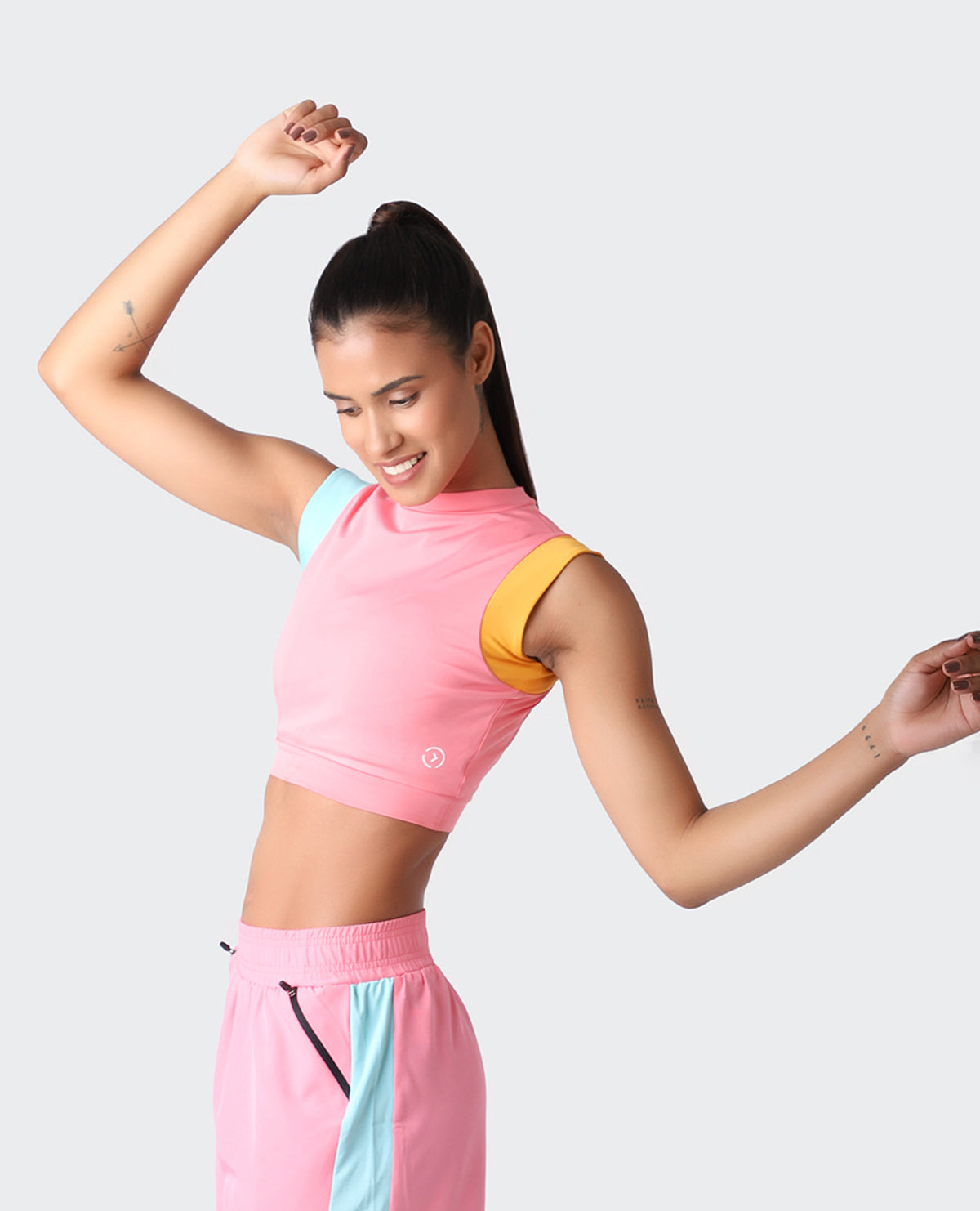 Crop it like it's hot! With a high neck and a comfortable fit, the Vista Pink Crop Top is sporty & sexy, all in one. Pair it with our Vista Pink Shorts or Vista Colourblock Leggings, tbh both are going to make heads turn.