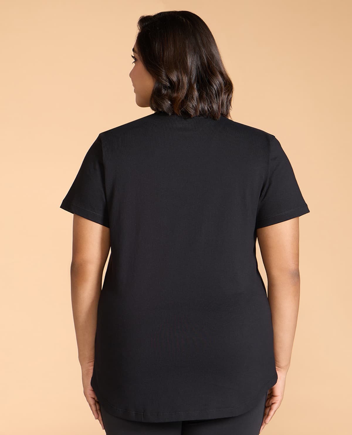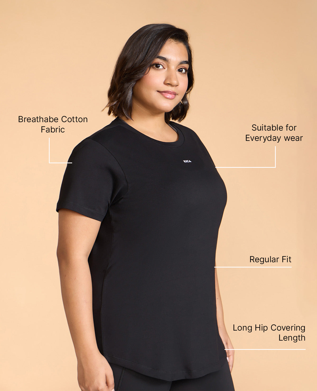 This basic cotton top has a longline hem that covers your hips and front. Designed in a soft cotton fabric, it is soft and breathable.